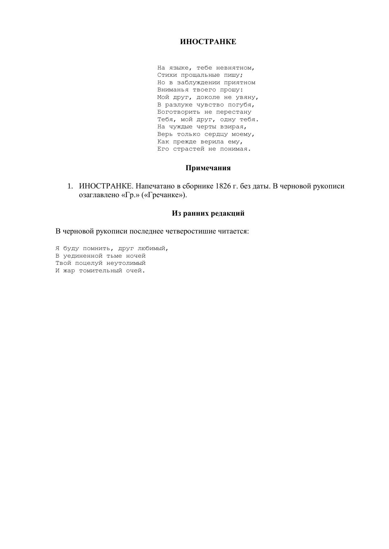 Иностранке ("На языке, тебе невнятном...")