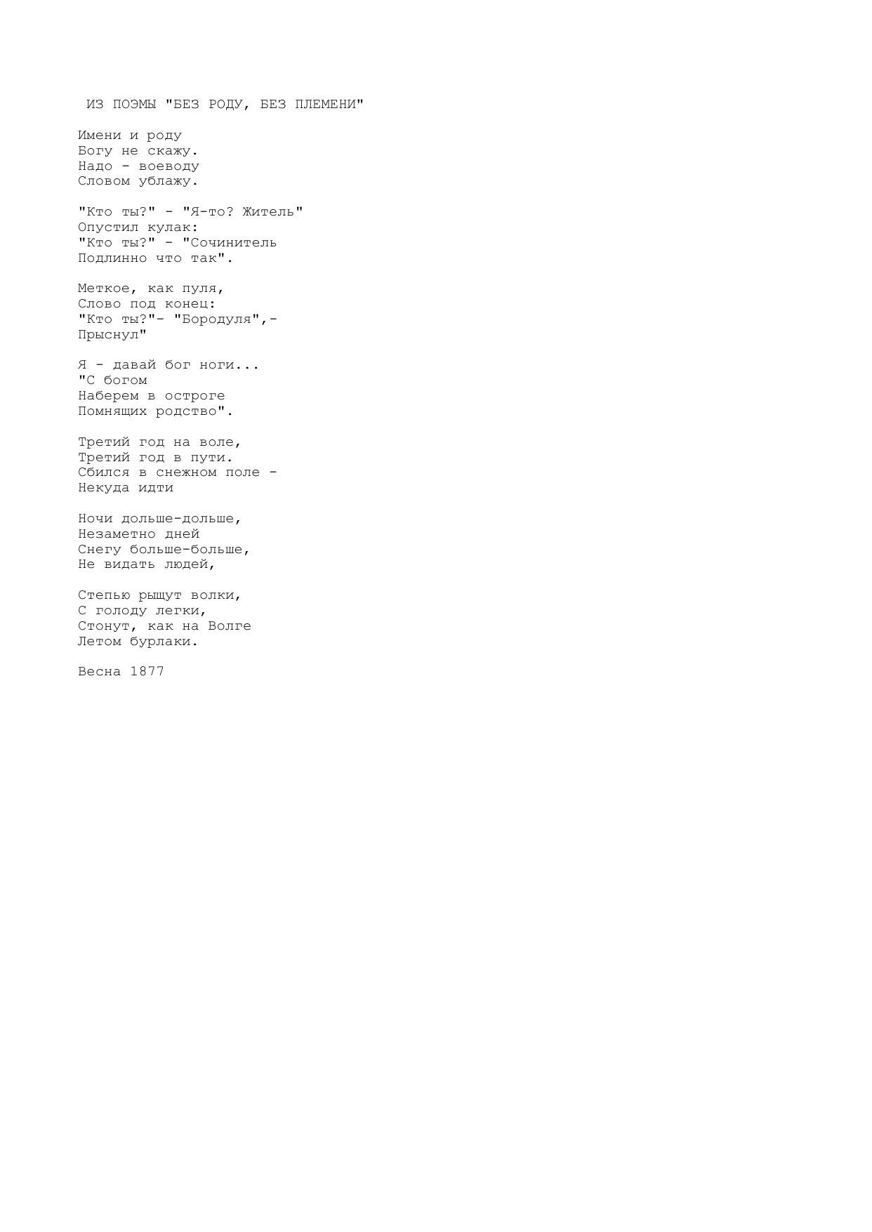 Из поэмы Без роду, без племени