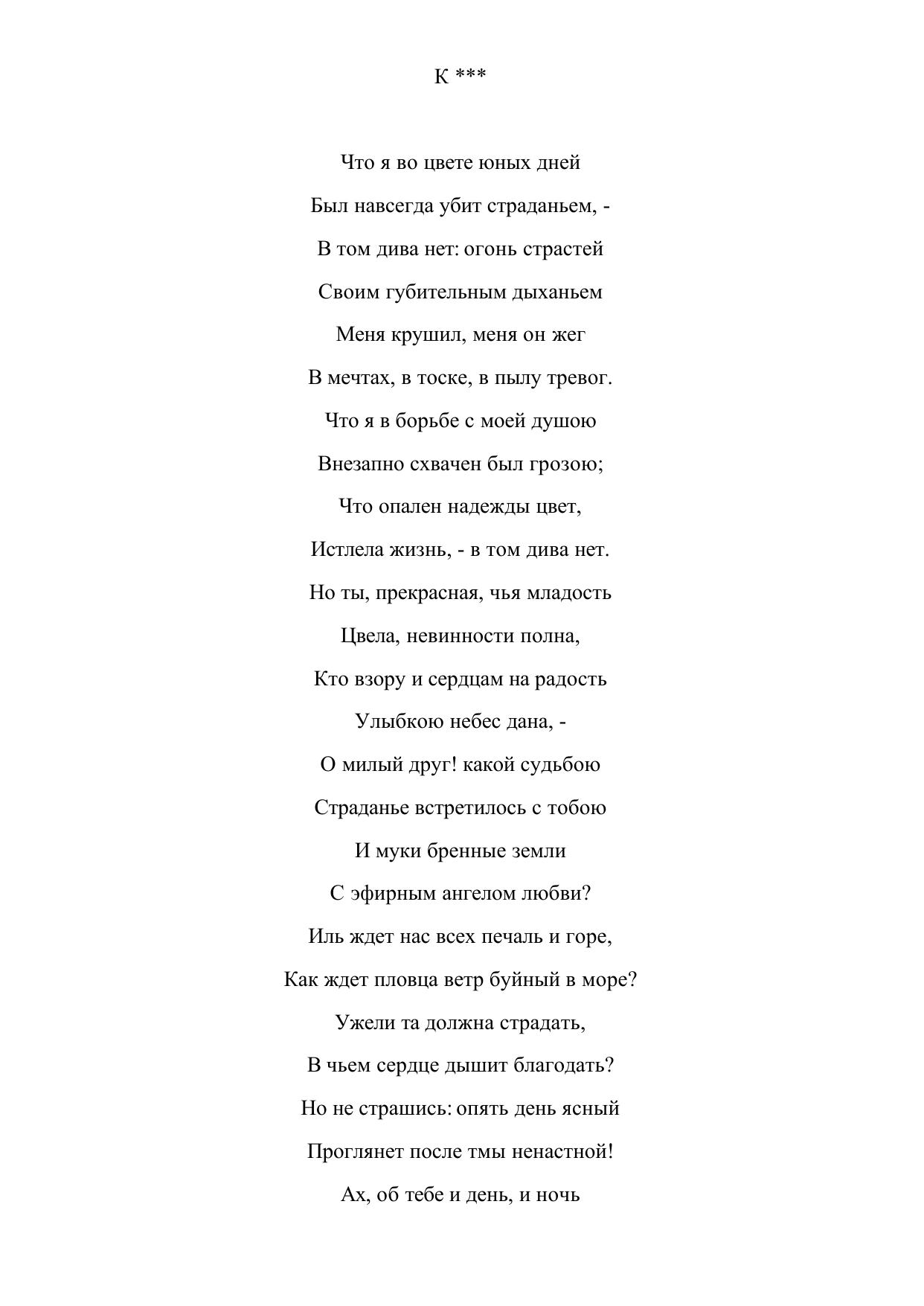К*** ("Что я во цвете юных дней...")