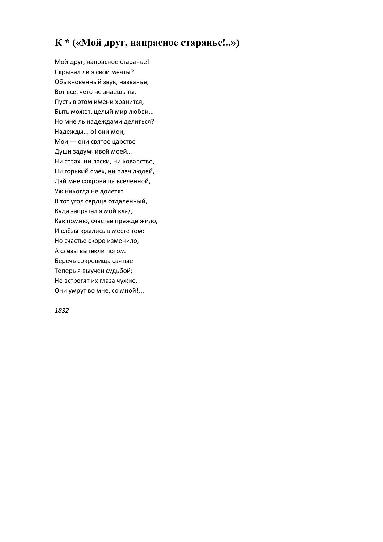 К * (Мой друг, напрасное старанье!..)