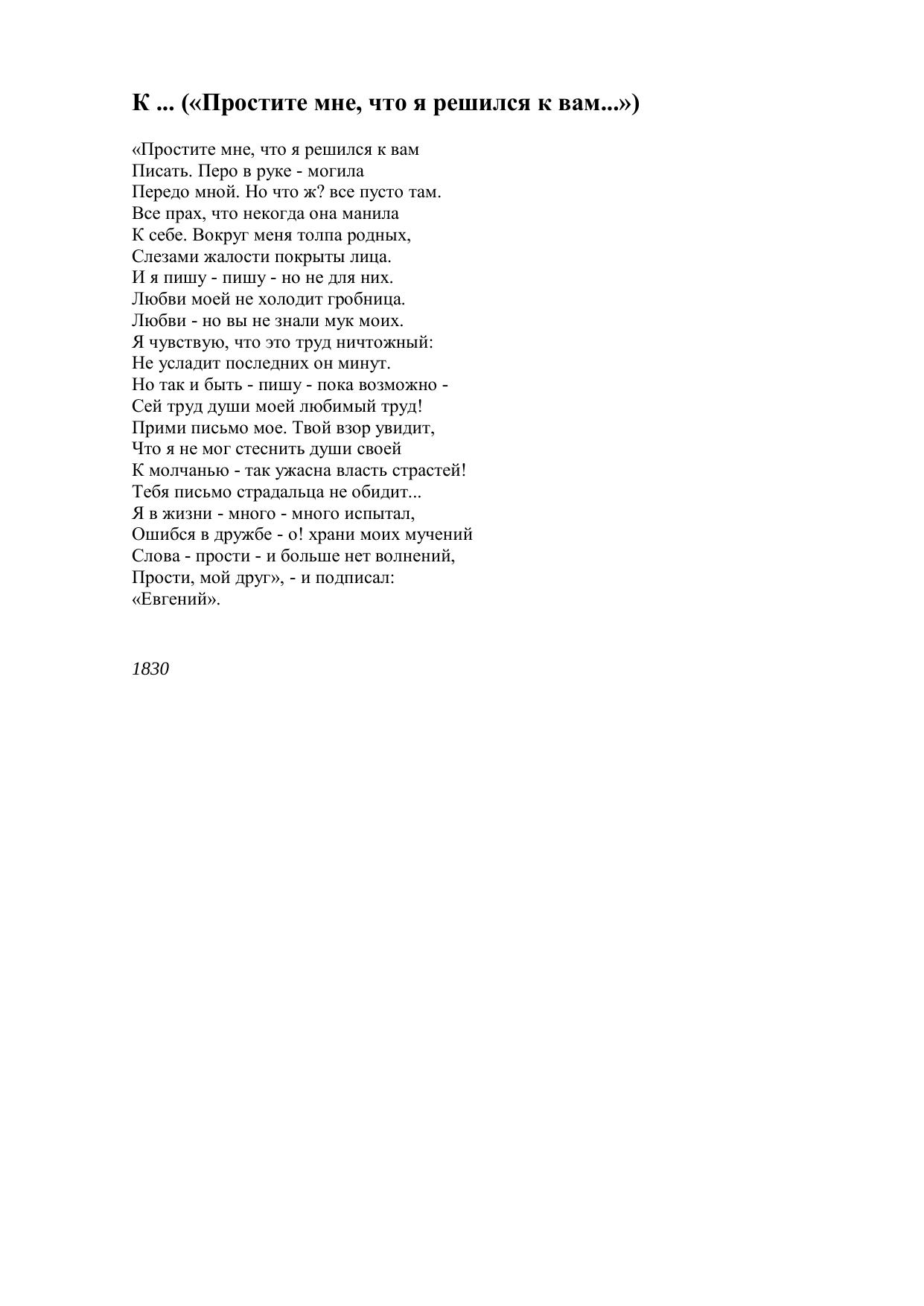 К ... (Простите мне, что я решился к вам...)