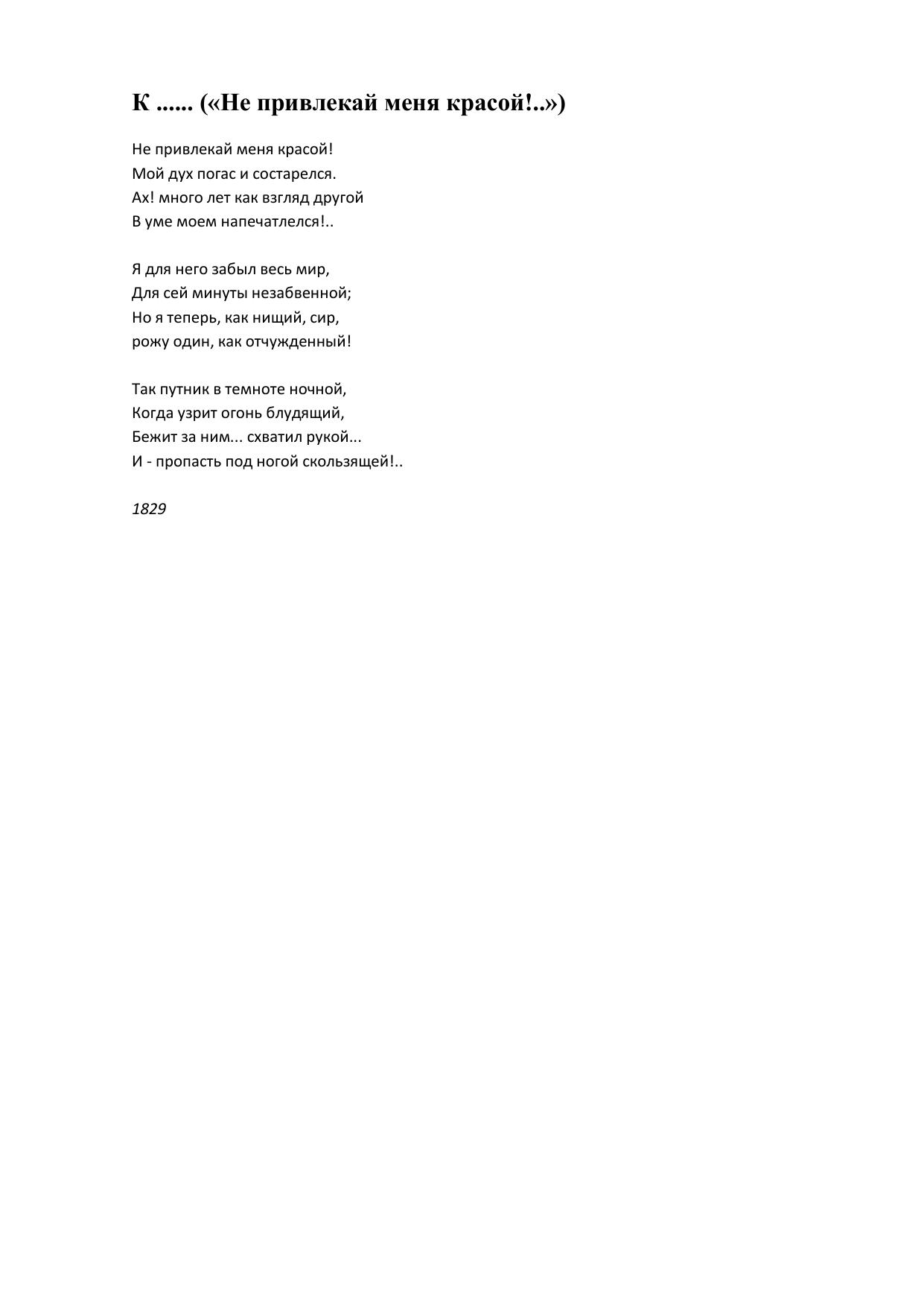 К ...... (Не привлекай меня красой!..)