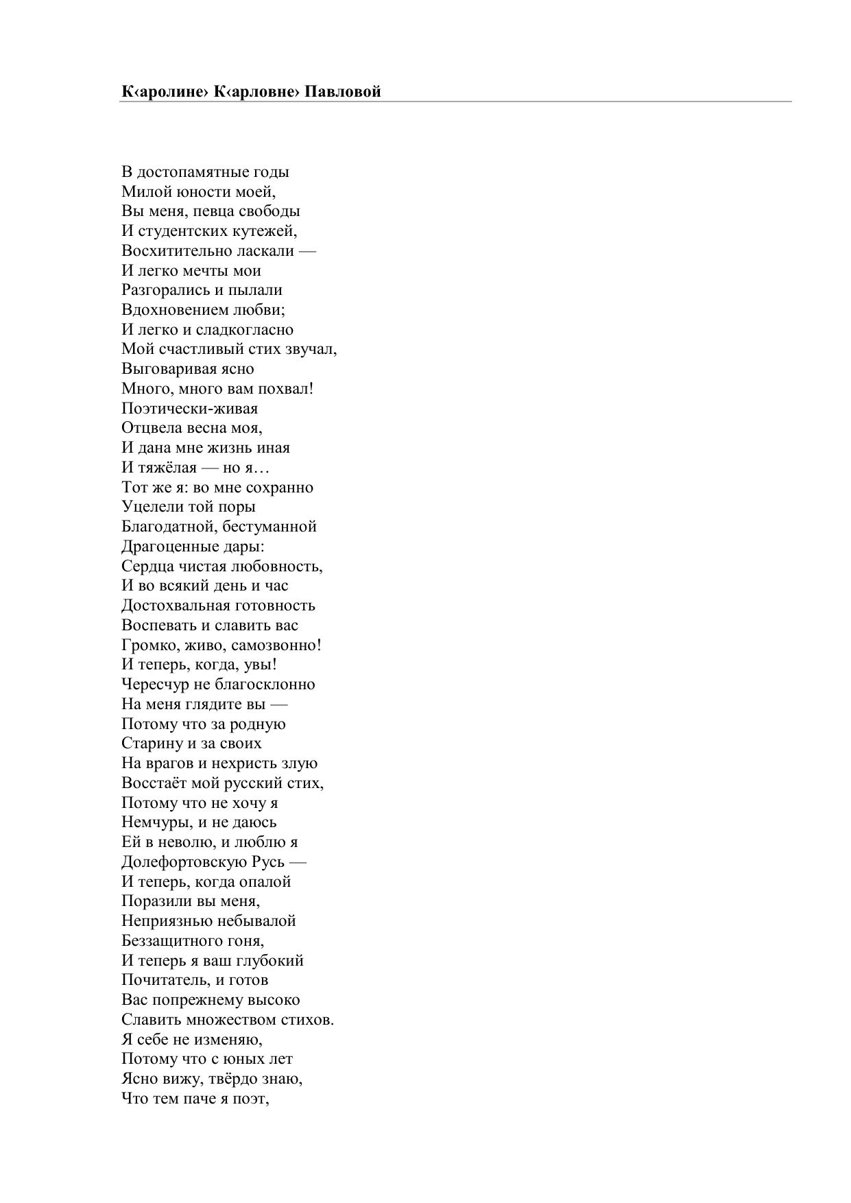 К. К. Павловой (В достопамятные годы…)