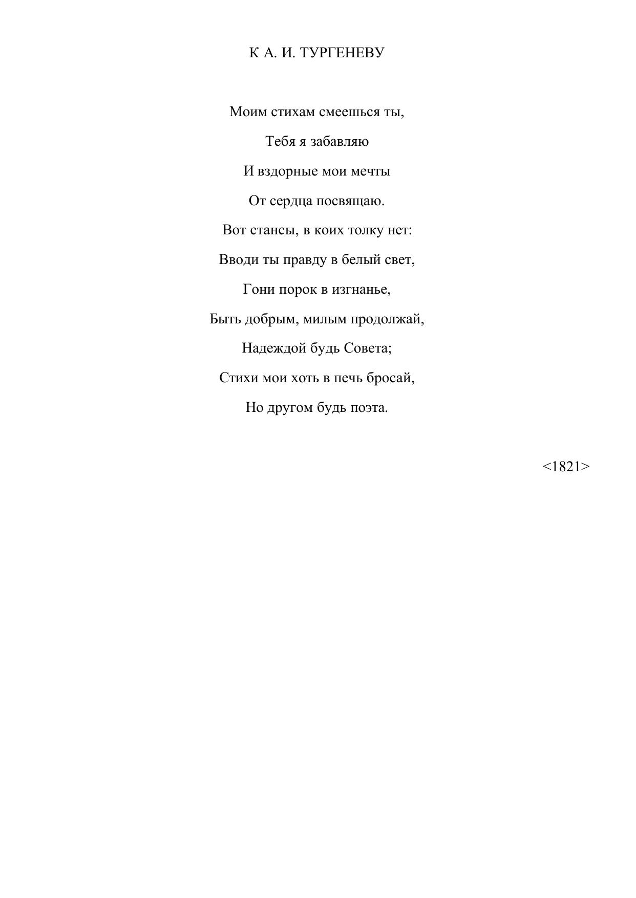 К А. И. Тургеневу ("Моим стихам смеешься ты...")
