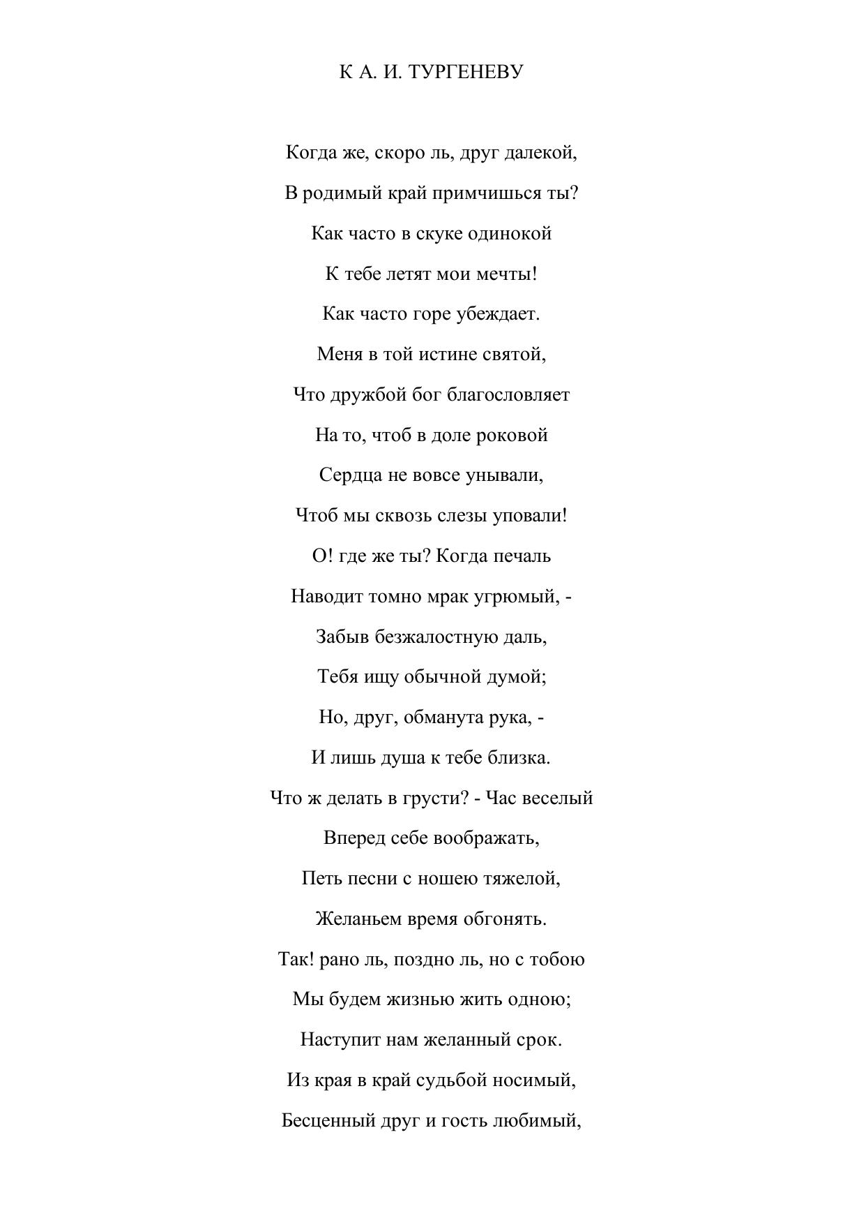 К А.И. Тургеневу ("Когда же, скоро ль, друг далекой...")