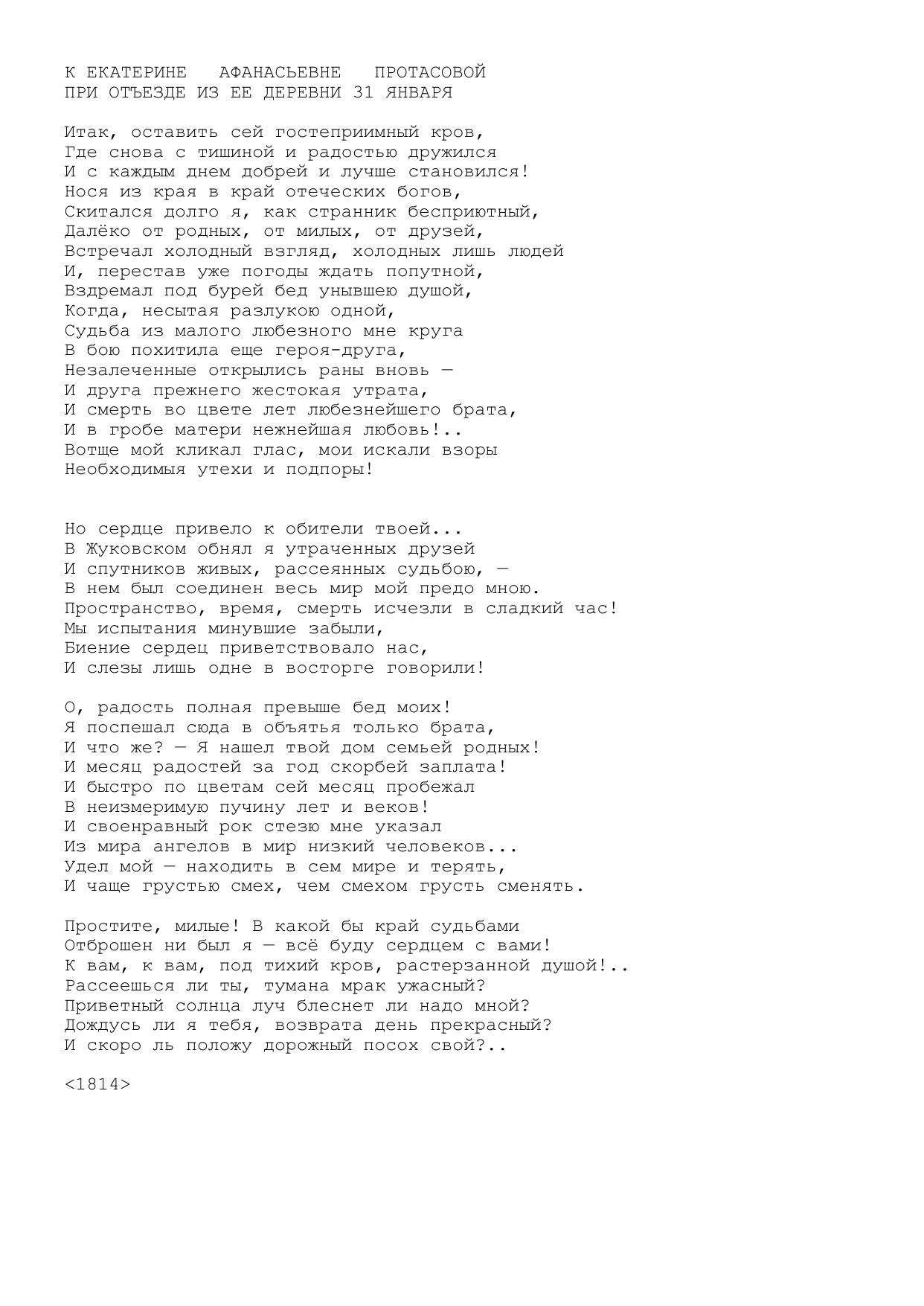 К Ек<атерине> Аф<анасьевне> П<ротасов>ой