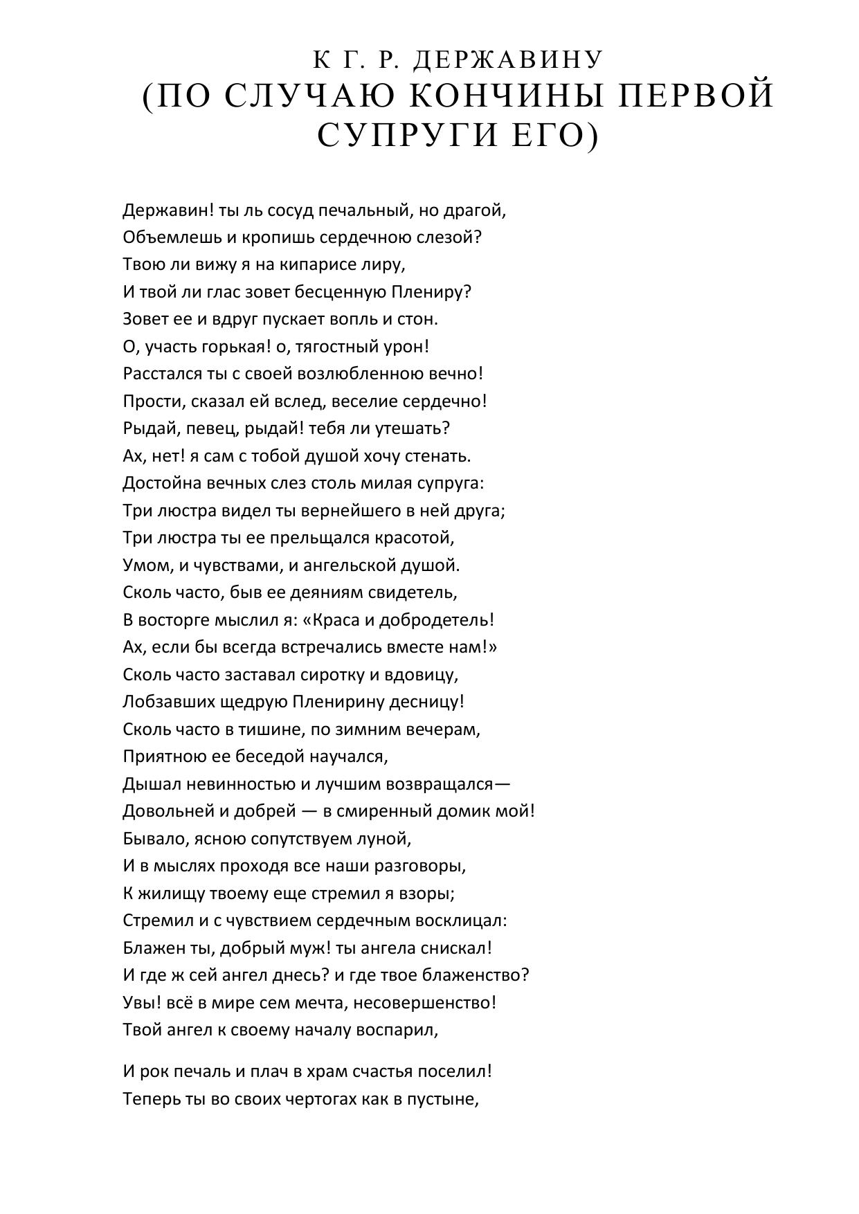 К Г. Р. Державину (По случаю кончины первой супруги его)