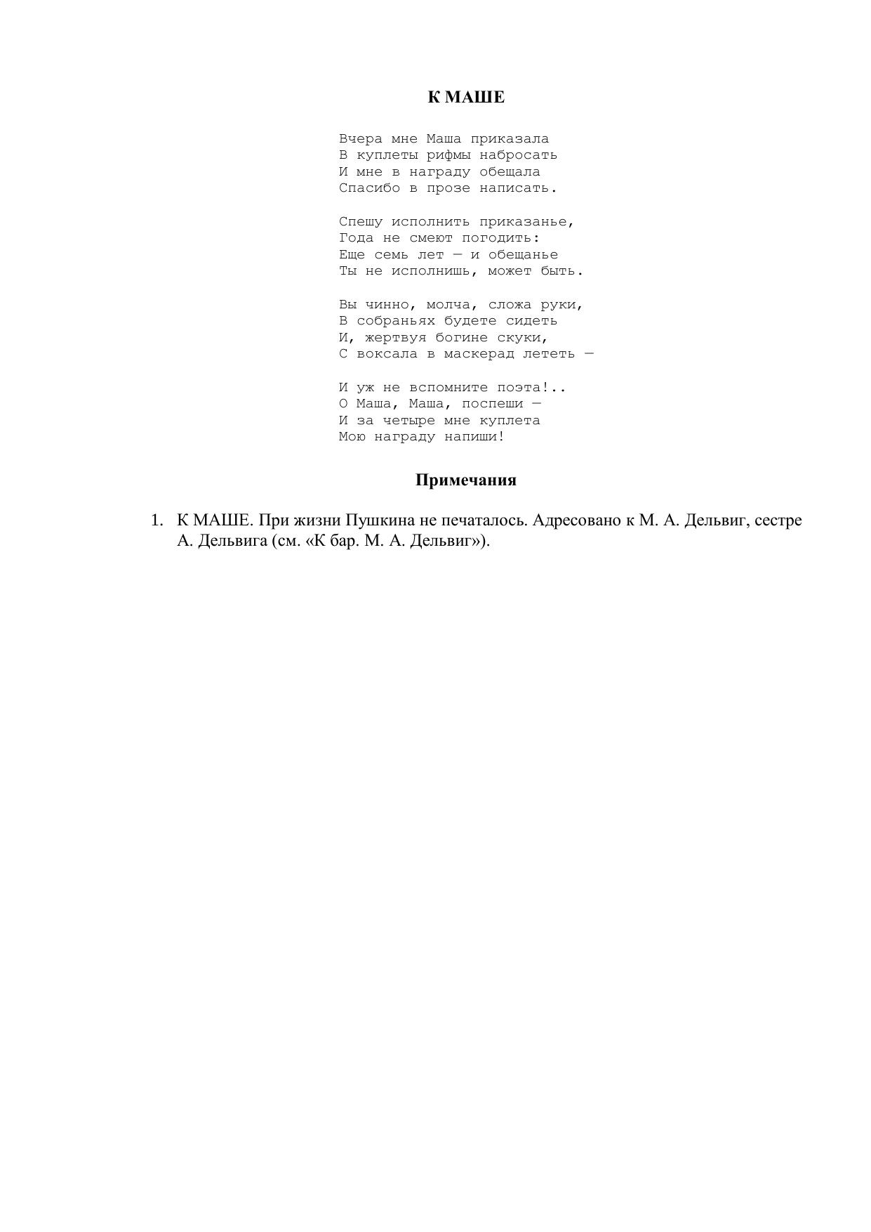К Маше ("Вчера мне Маша приказала...")