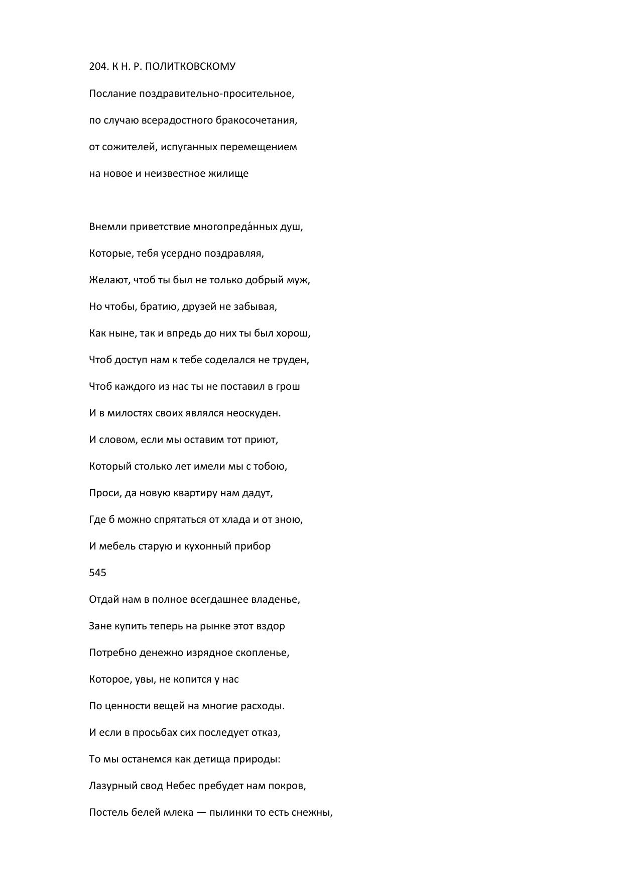 К Н. Р. Политковскому Послание поздравительно-просительное