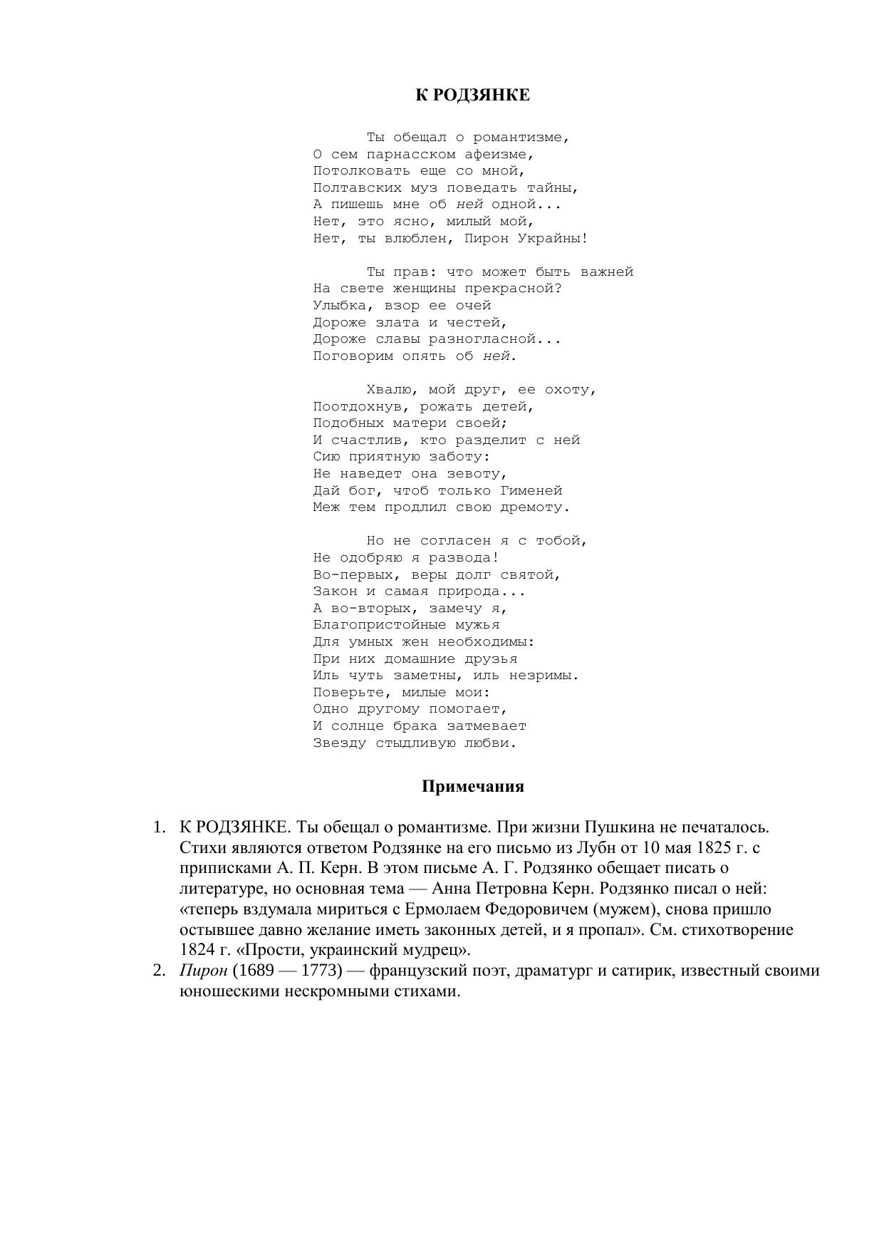 К Родзянке ("Ты обещал о романтизме...")