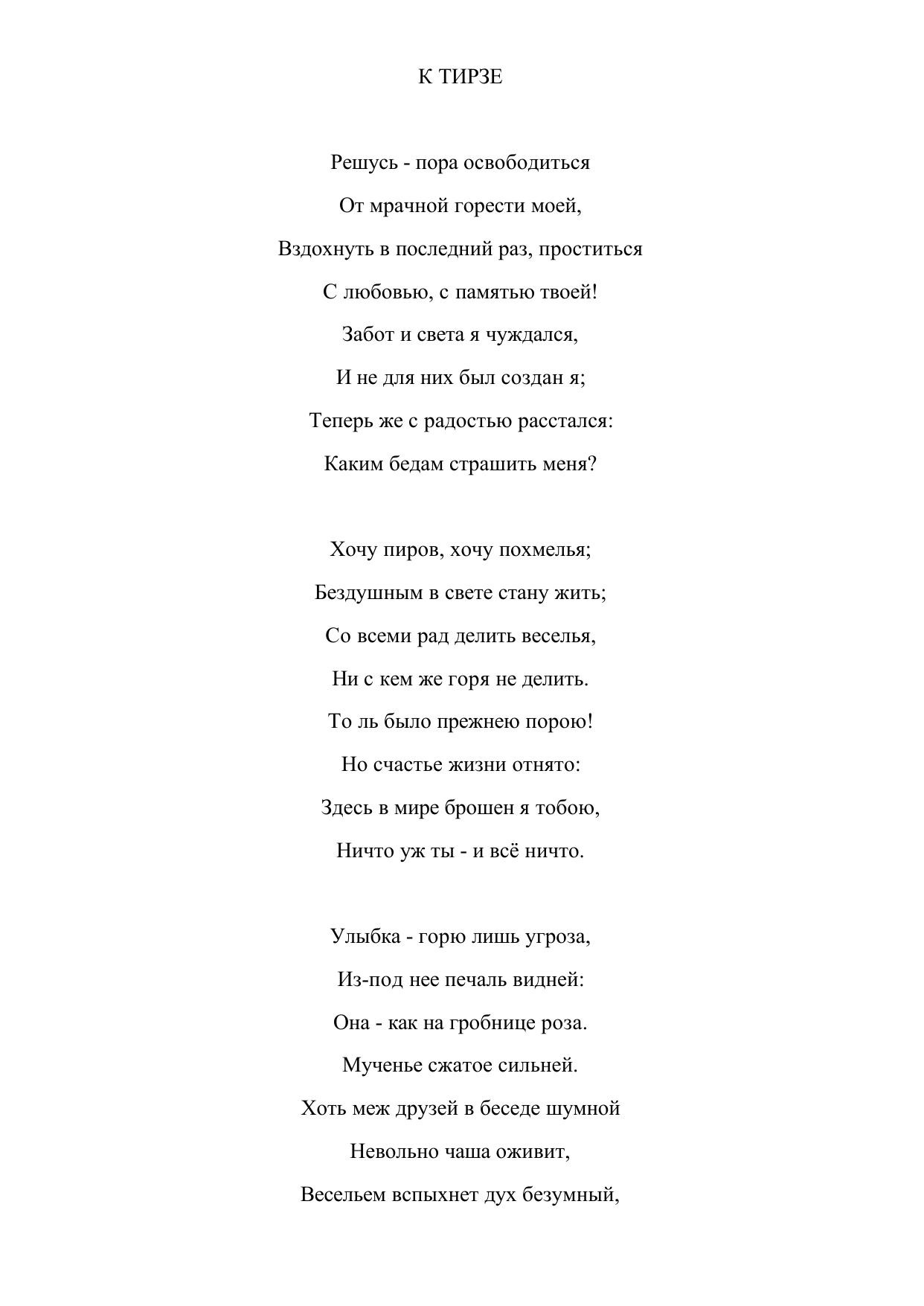 К Тирзе ("Решусь - пора освободиться...")