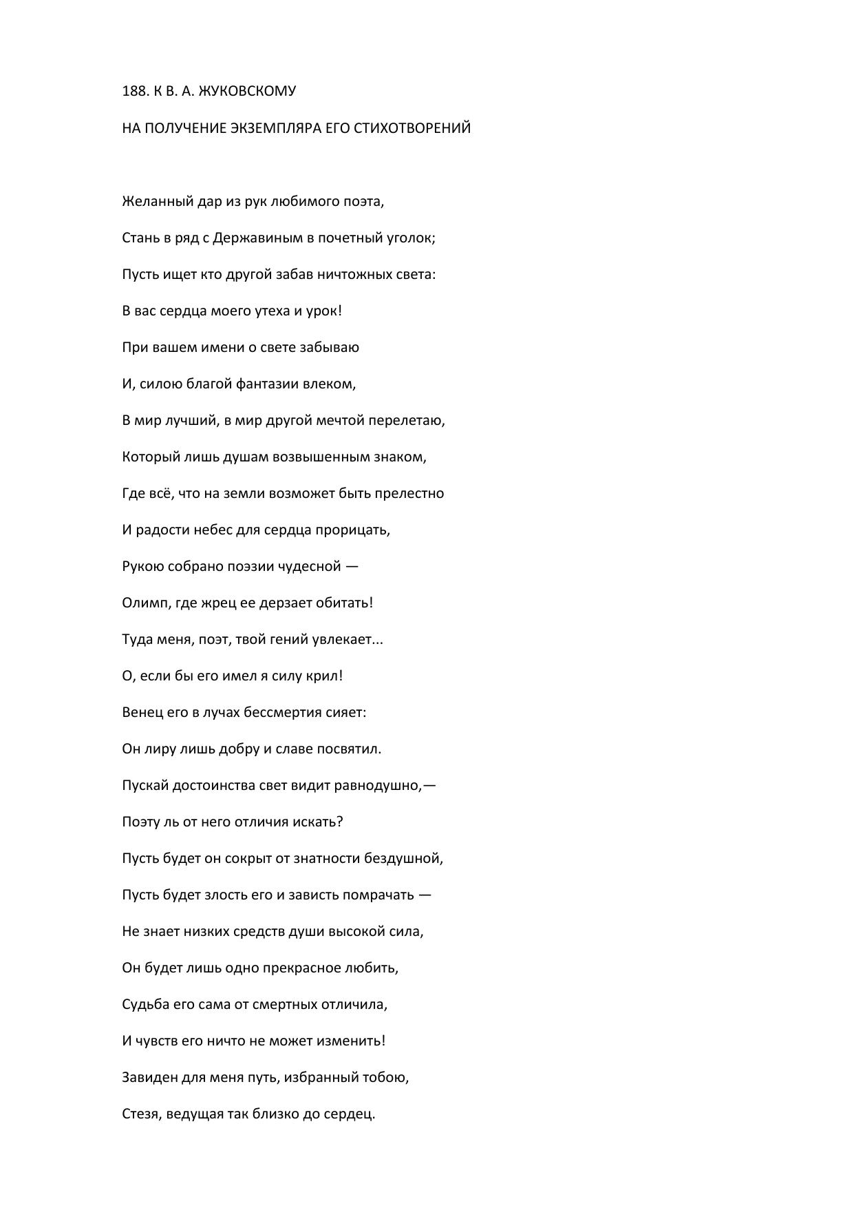 К В. А. Жуковскому, на получение экземпляра его стихотворений