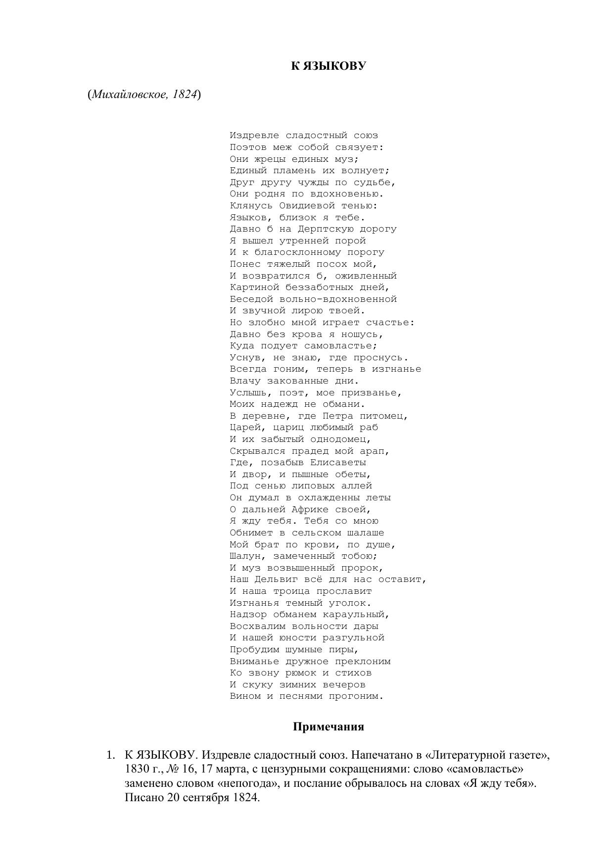 К Языкову ("Издревле сладостный союз...")