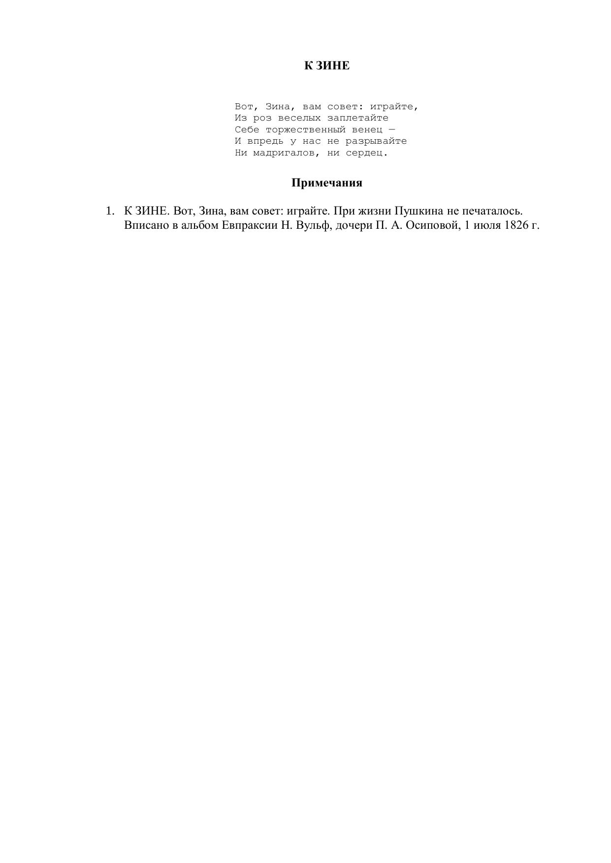 К Зине ("Вот, Зина, вам совет: играйте...")