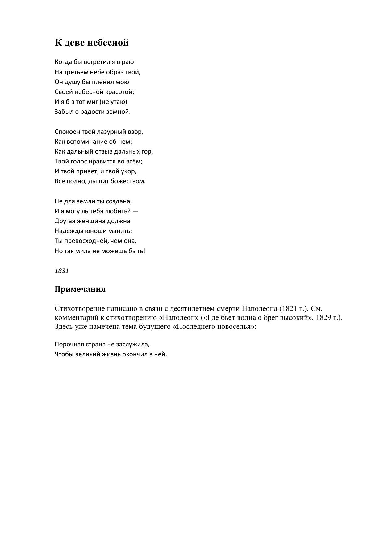 К деве небесной
