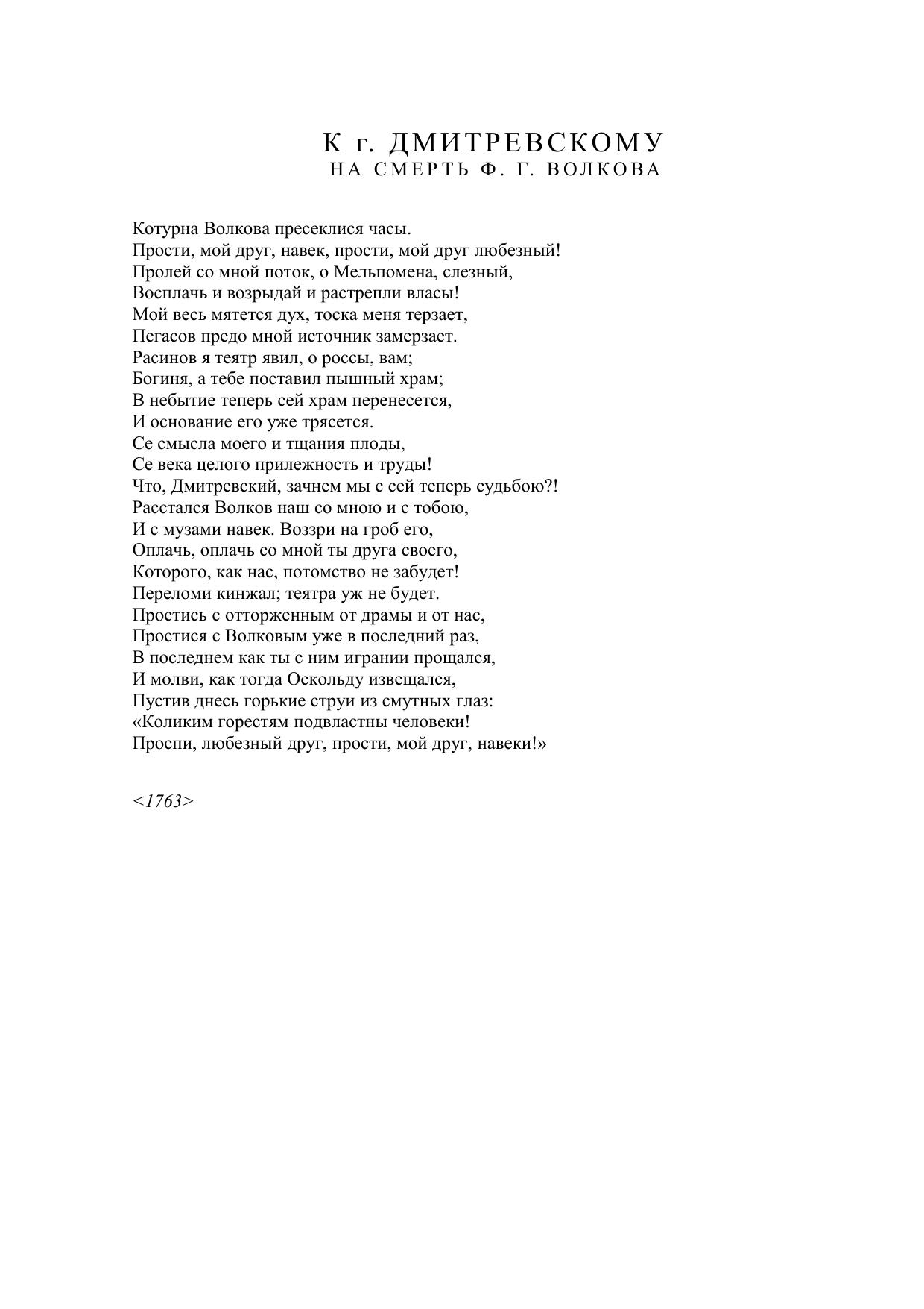 К г. Дмитревскому на смерть Ф. Г. Волкова