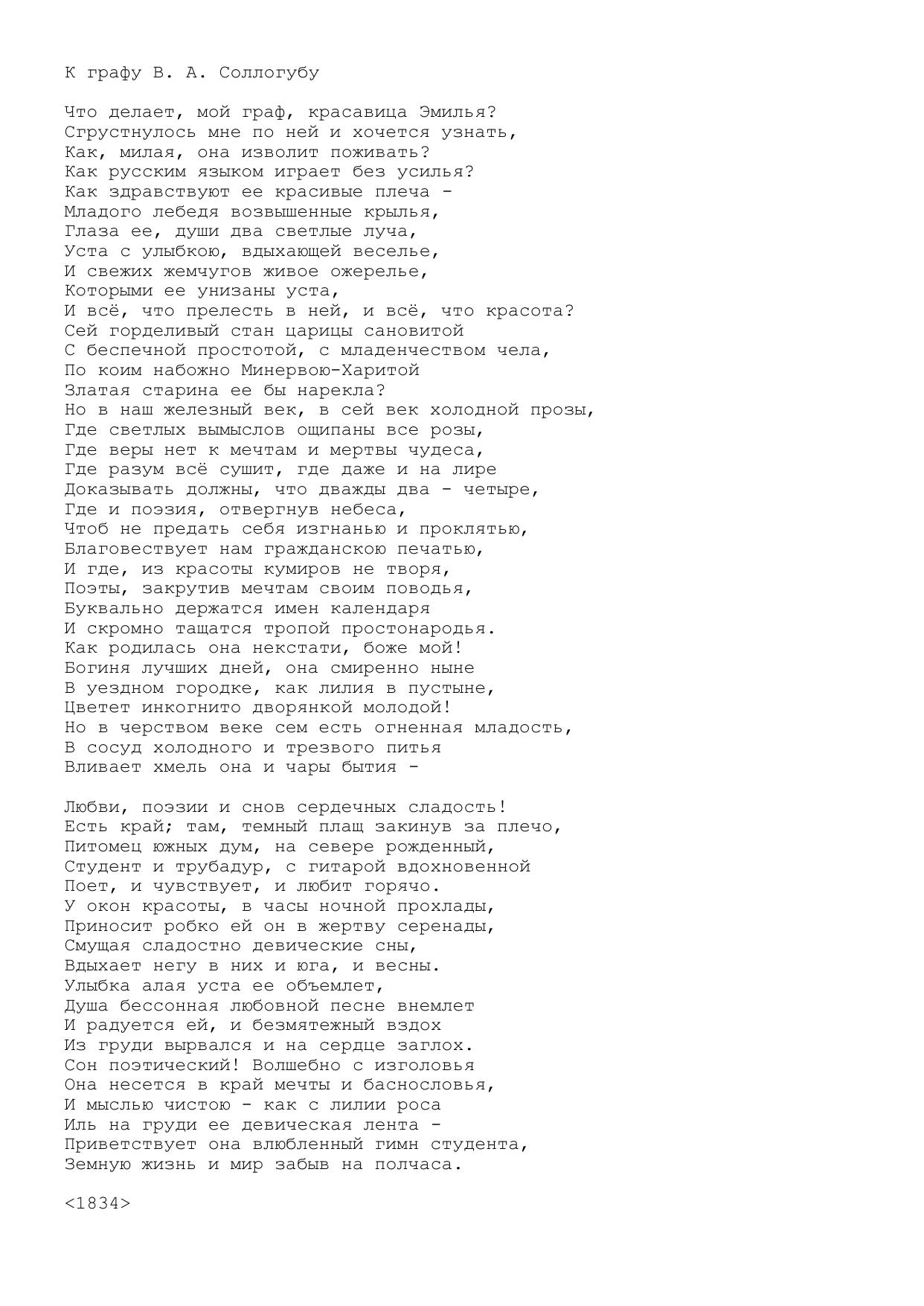 К графу В. А. Соллогубу