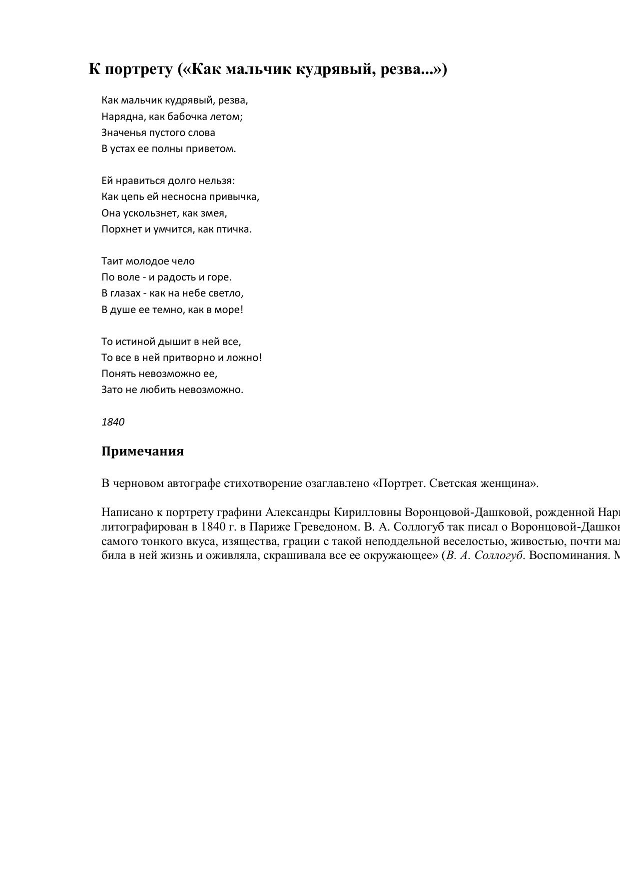 К портрету (Как мальчик кудрявый, резва...)