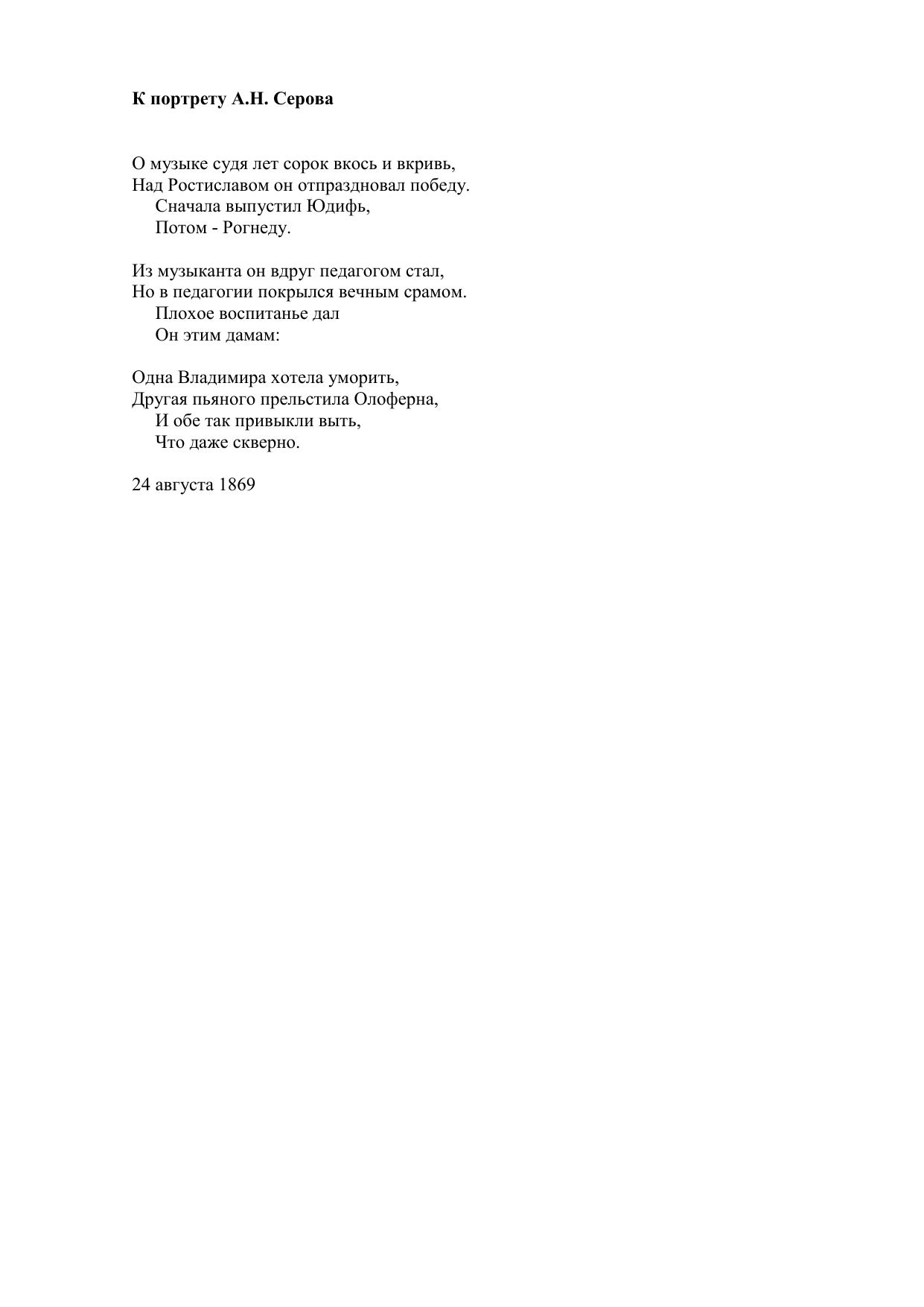 К портрету А.Н. Серова
