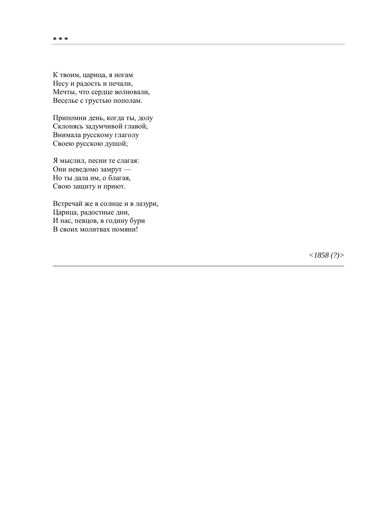 К твоим, царица, я ногам…