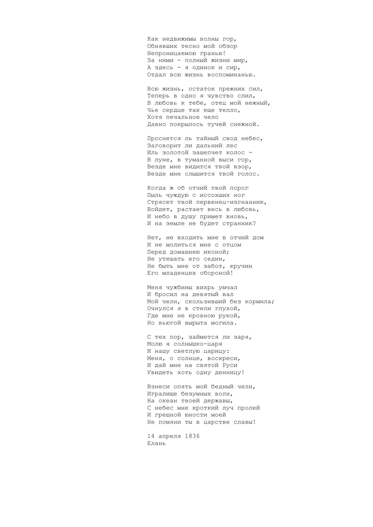 Как недвижимы волны гор...