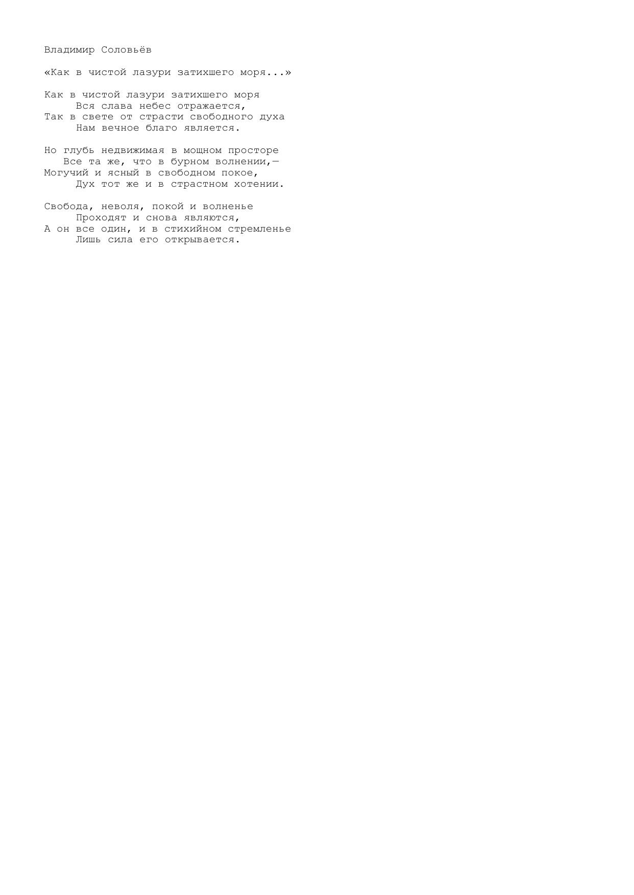 Как в чистой лазури затихшего моря...