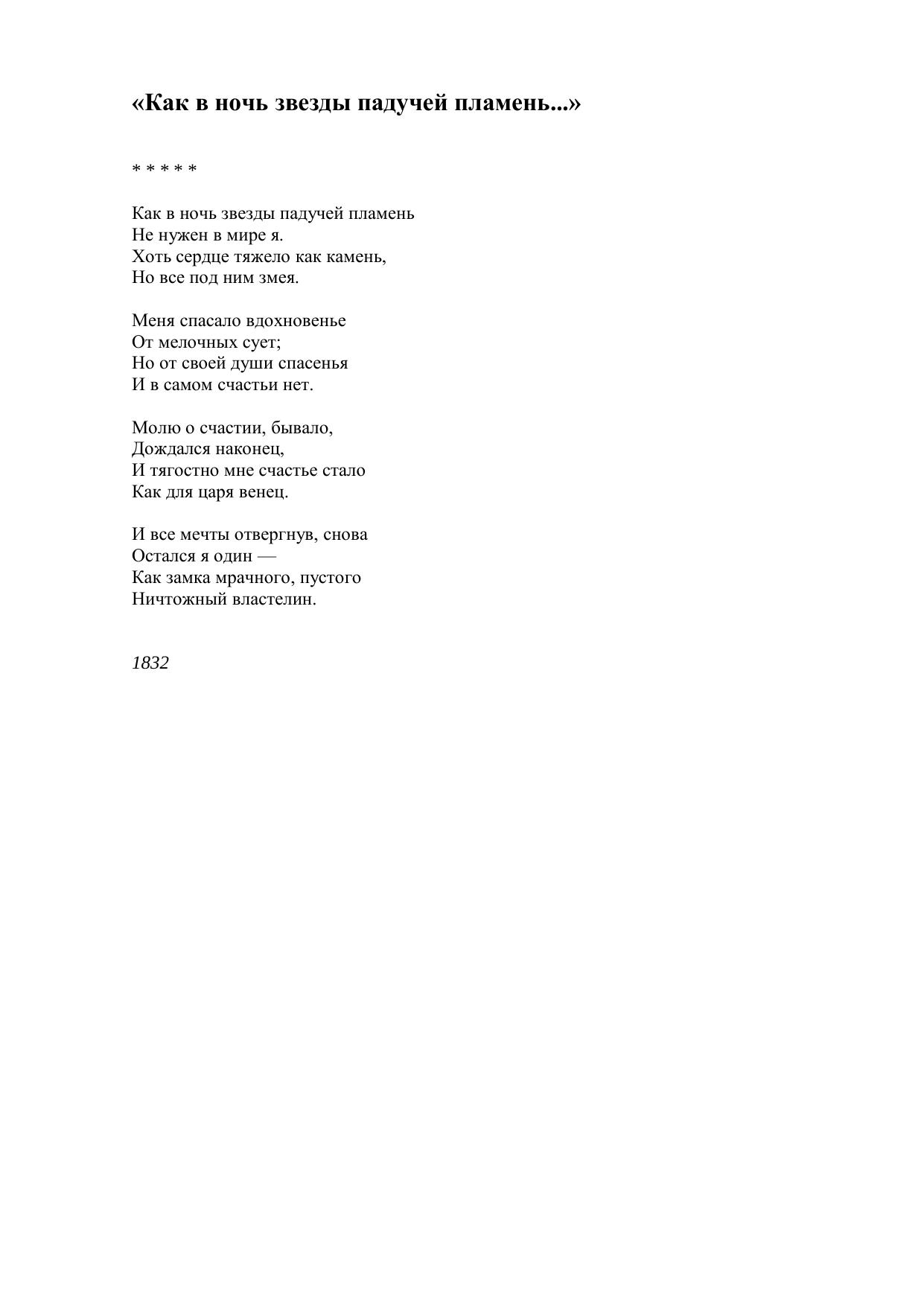Как в ночь звезды падучей пламень...