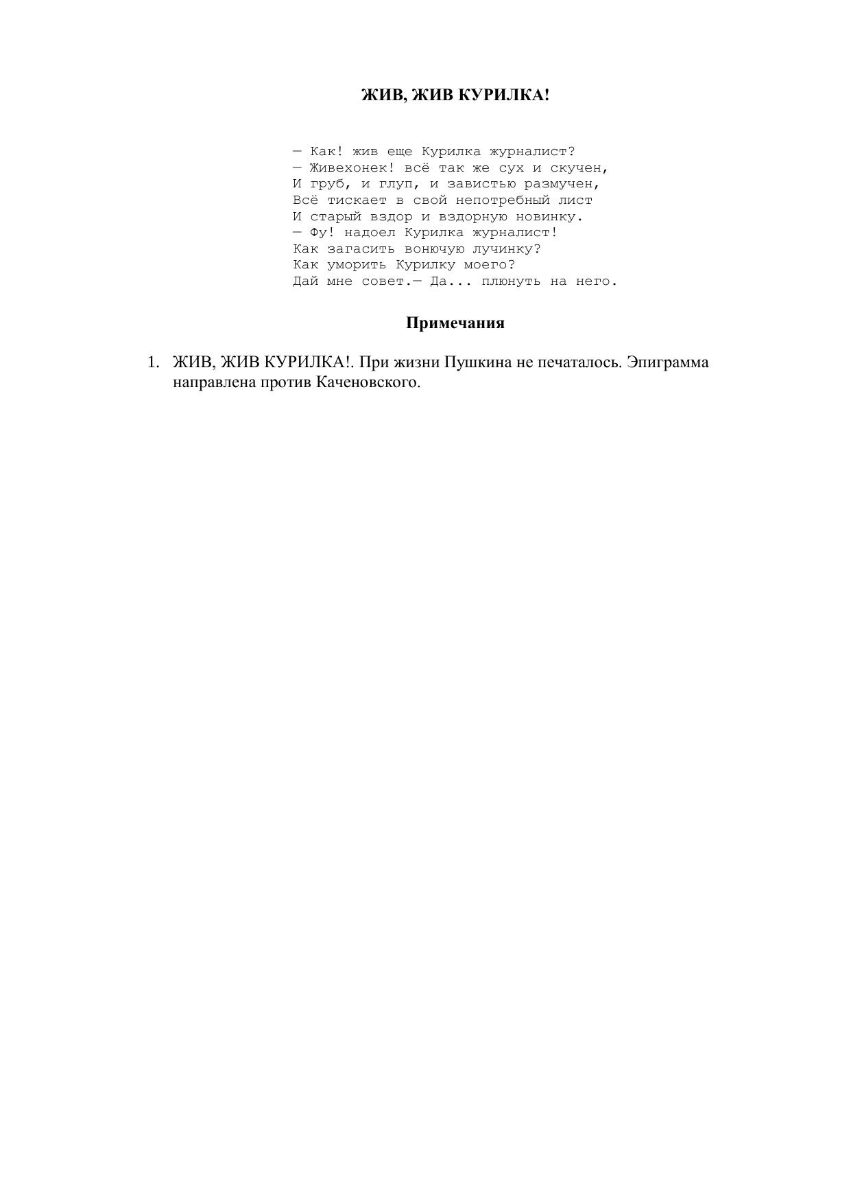 Как! жив еще Курилка журналист?..")