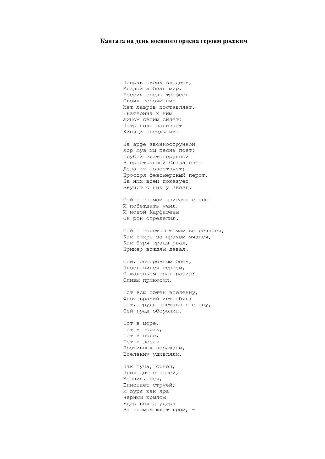 Кантата на день военного ордена героям росским