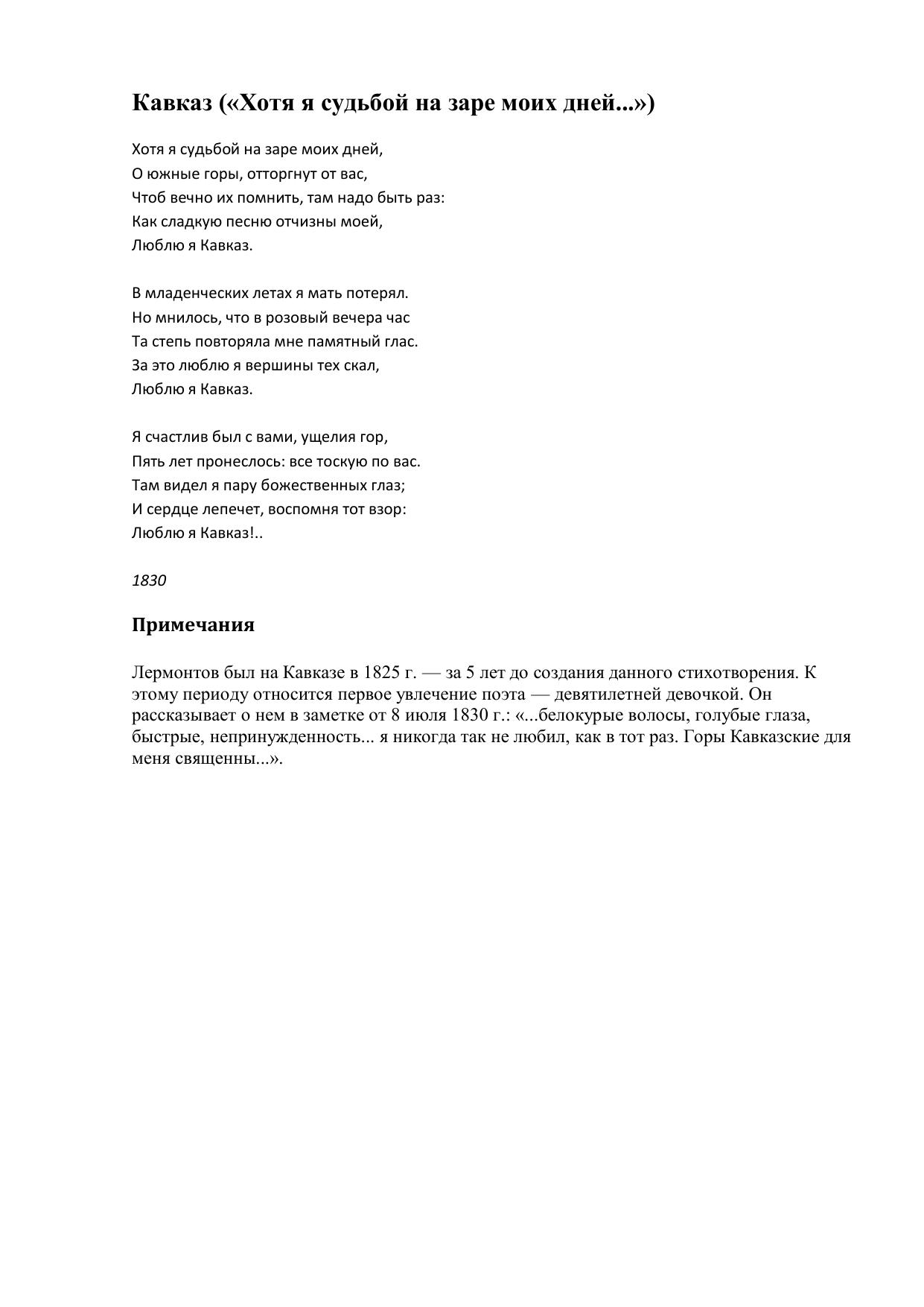 Кавказ (Хотя я судьбой на заре моих дней...)
