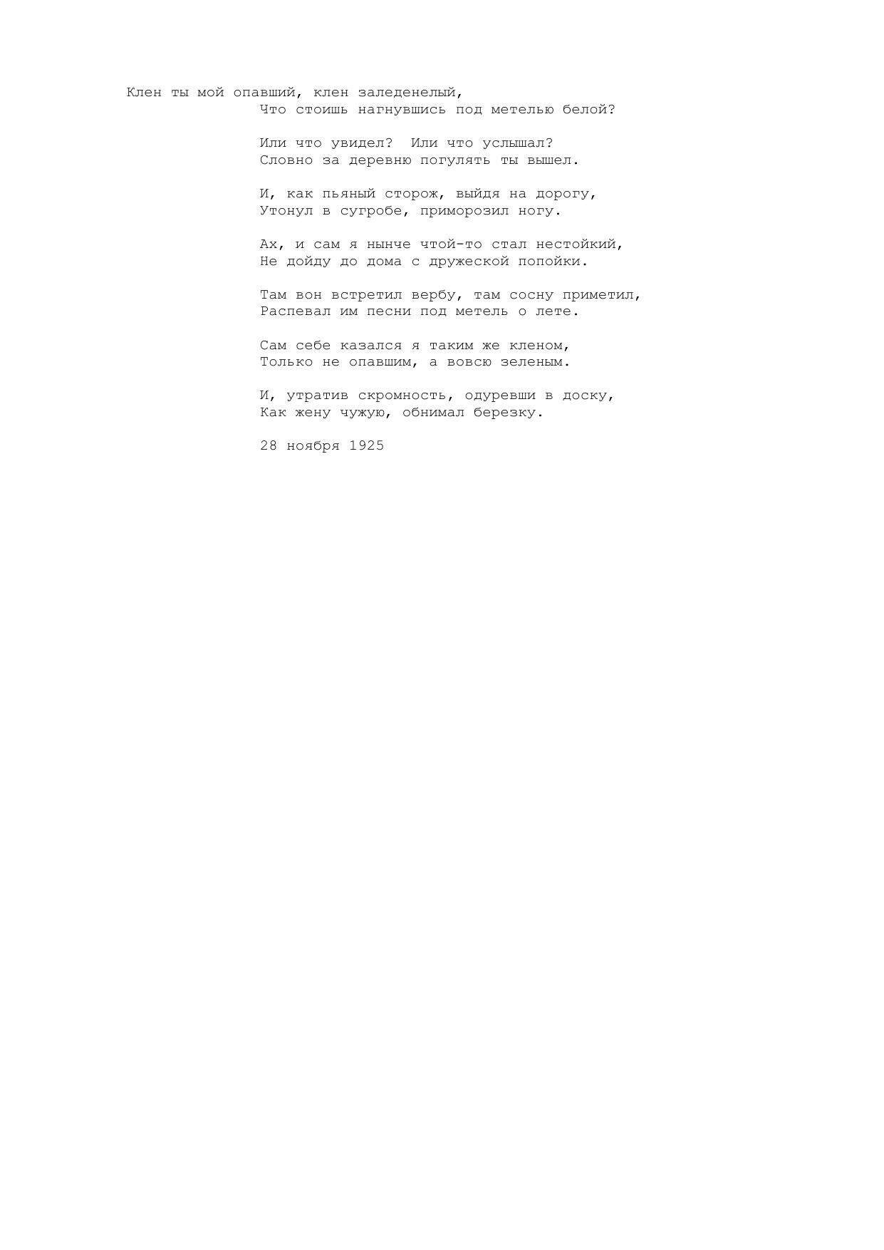 Клен ты опавший, клен заледенелый...