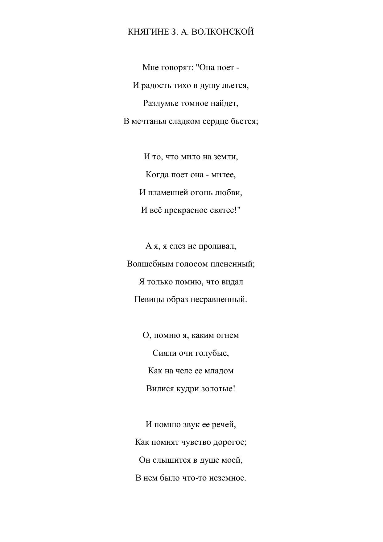 Княгине З.А. Волконской ("Мне говорят: "Она поет...")