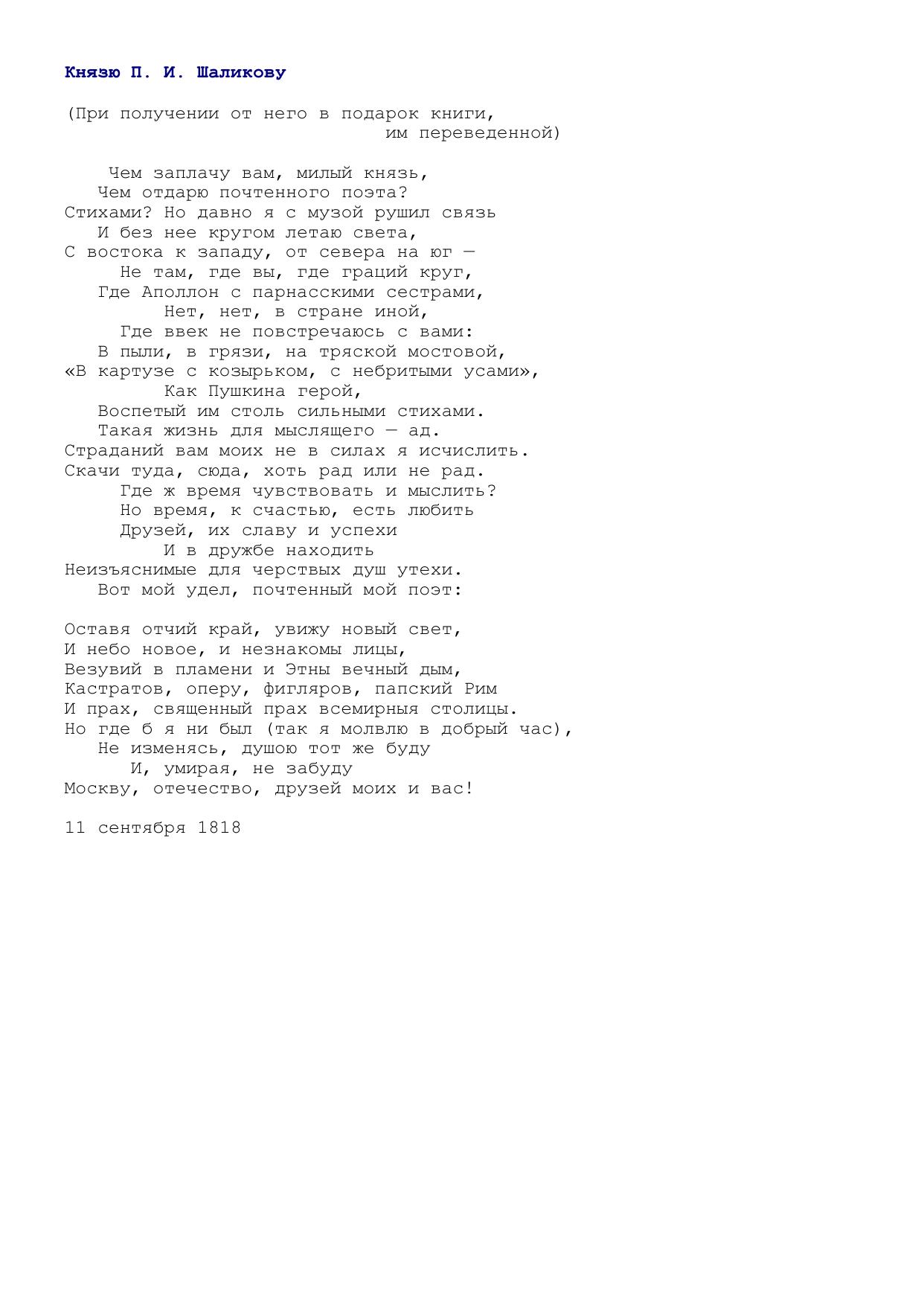 Князю П. И. Шаликову