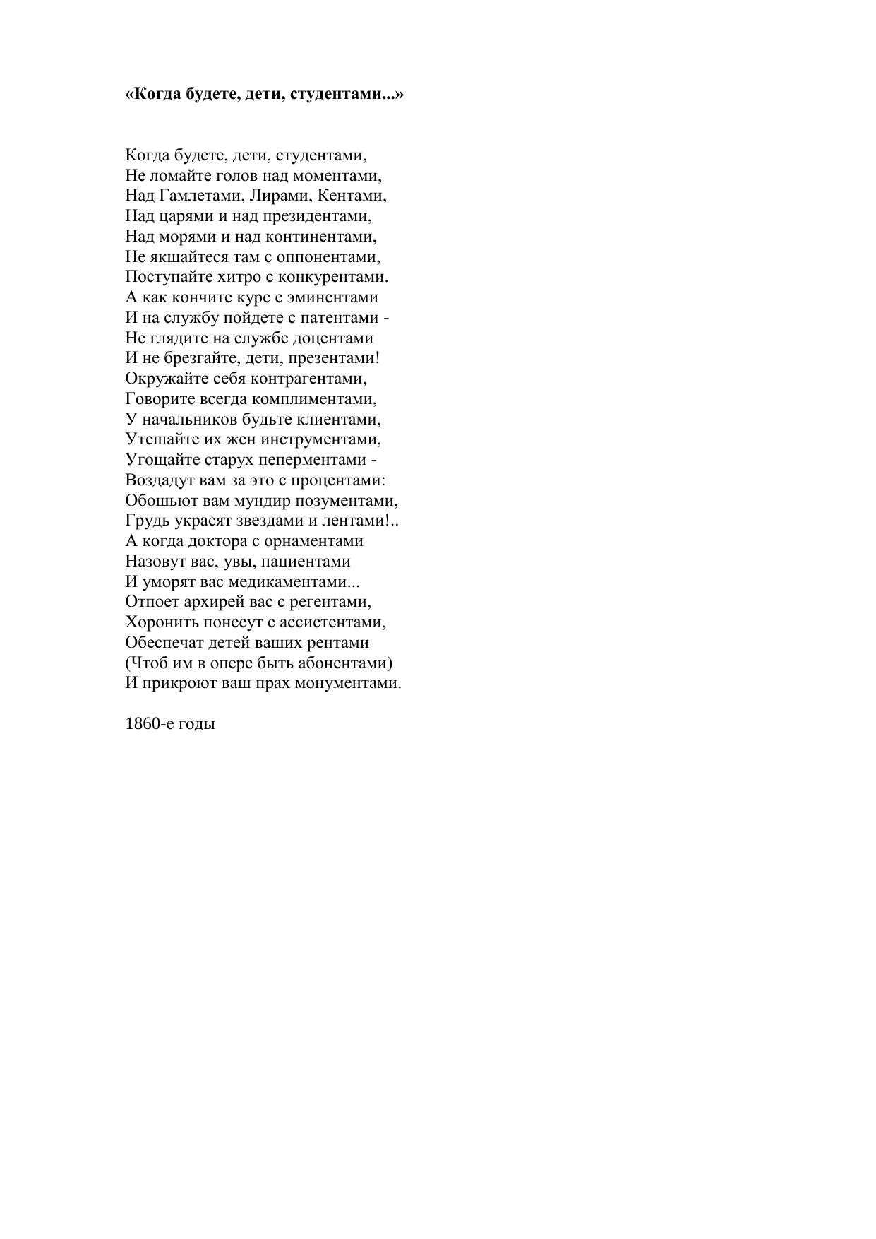 Когда будете, дети, студентами...