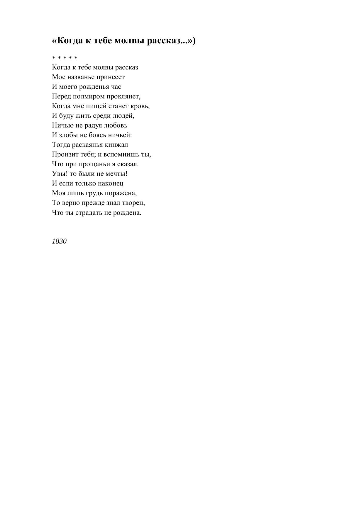 Когда к тебе молвы рассказ...)