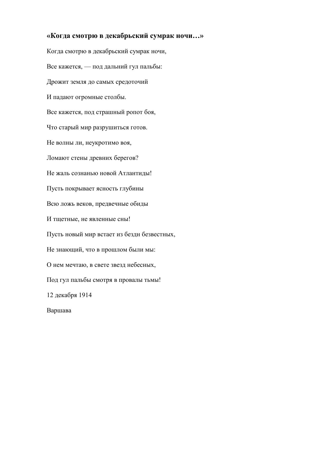 Когда смотрю в декабрьский сумрак ночи…