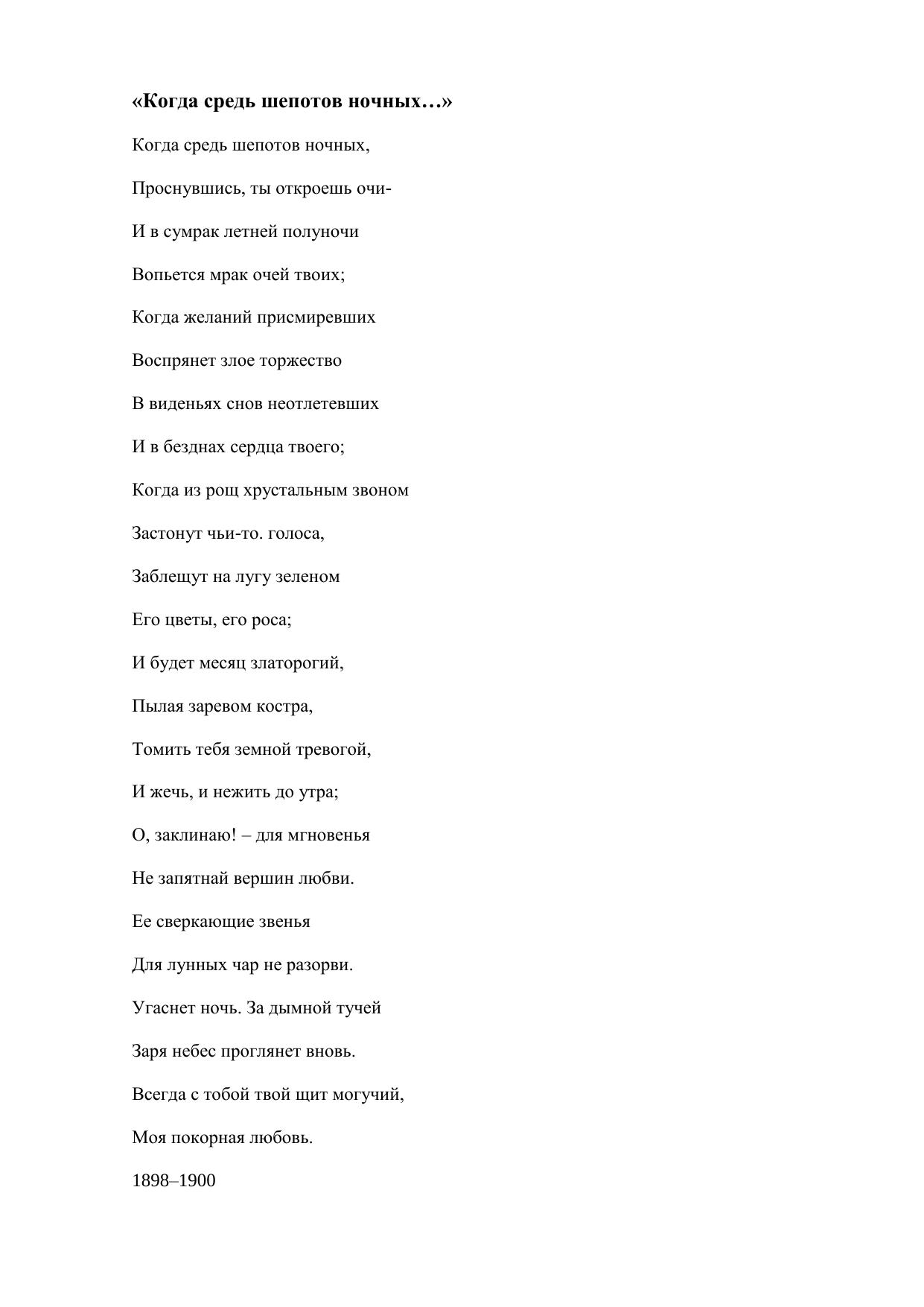 Когда средь шепотов ночных…