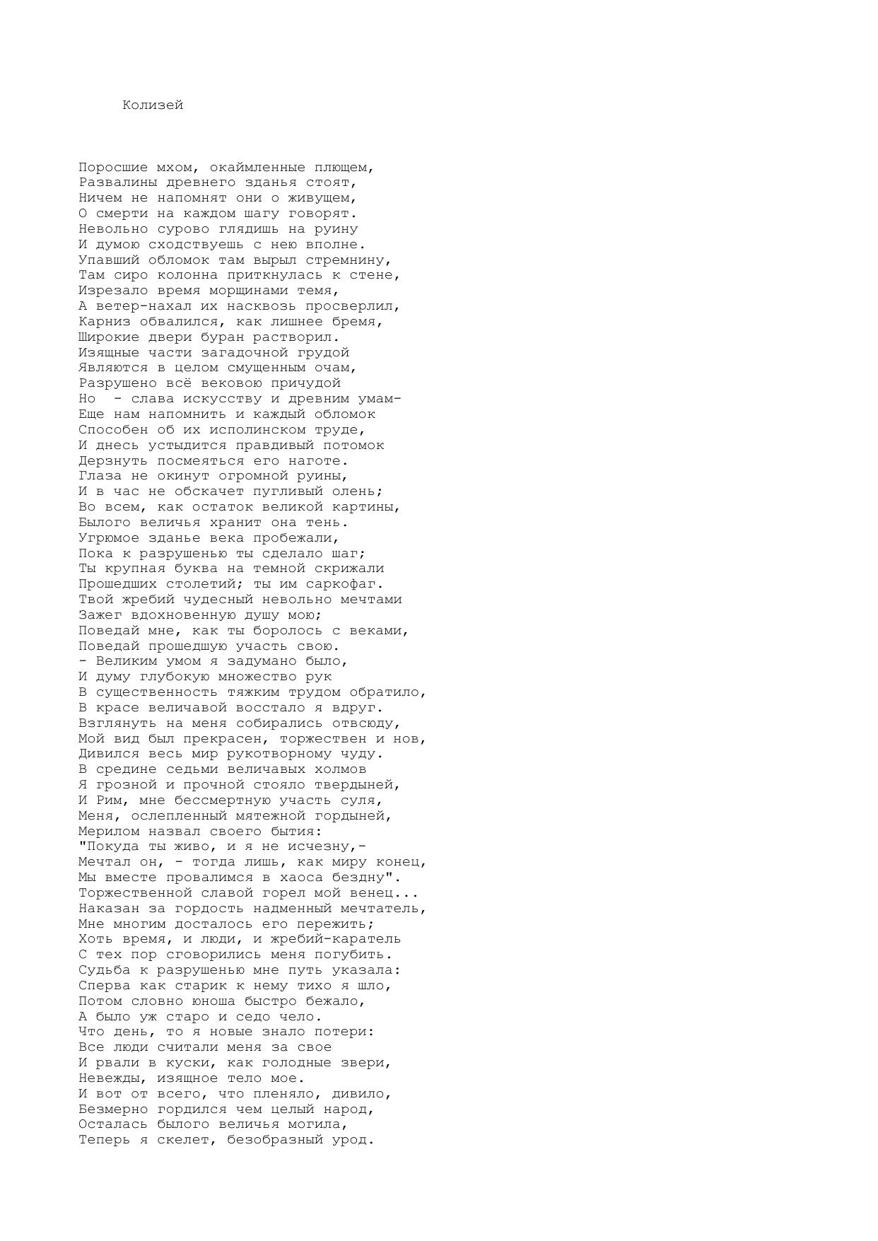 Колизей (Поросшие мхом, окаймленные плющем...)
