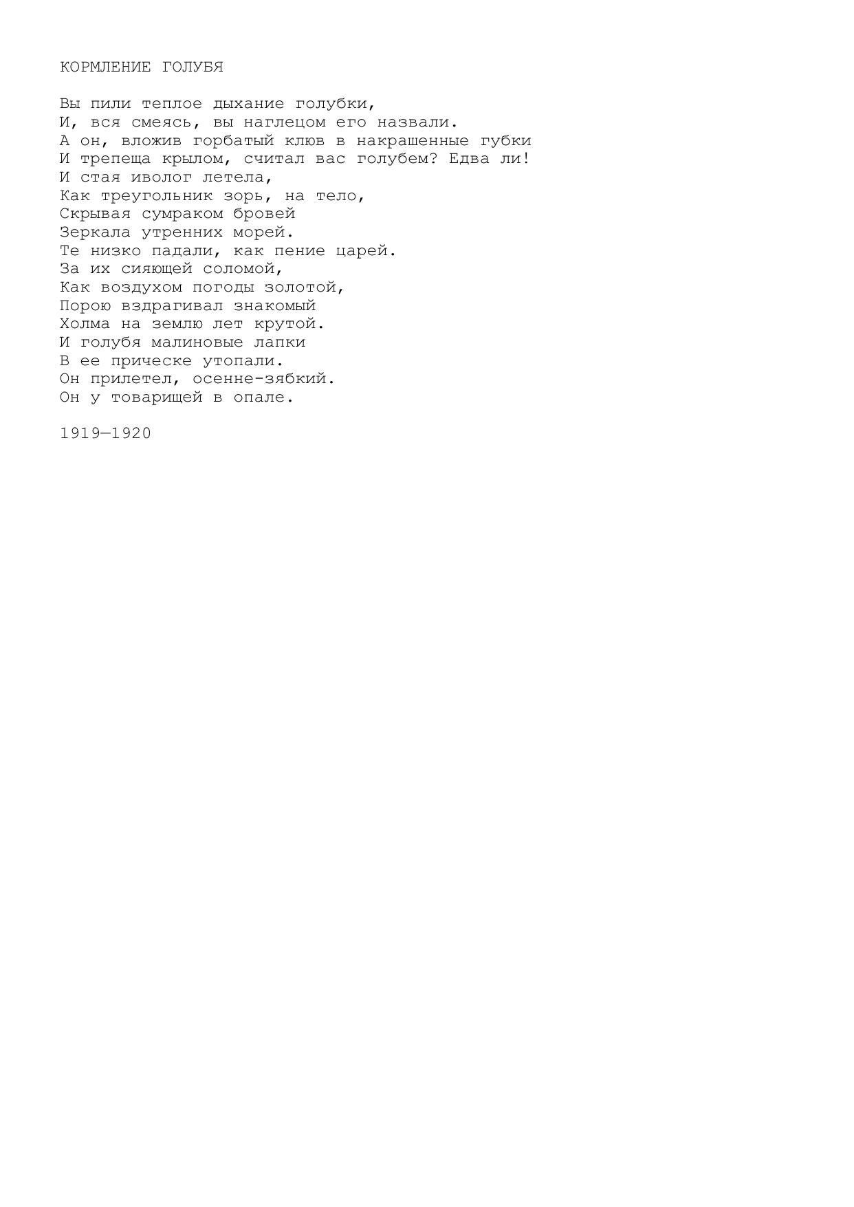 Кормление голубя