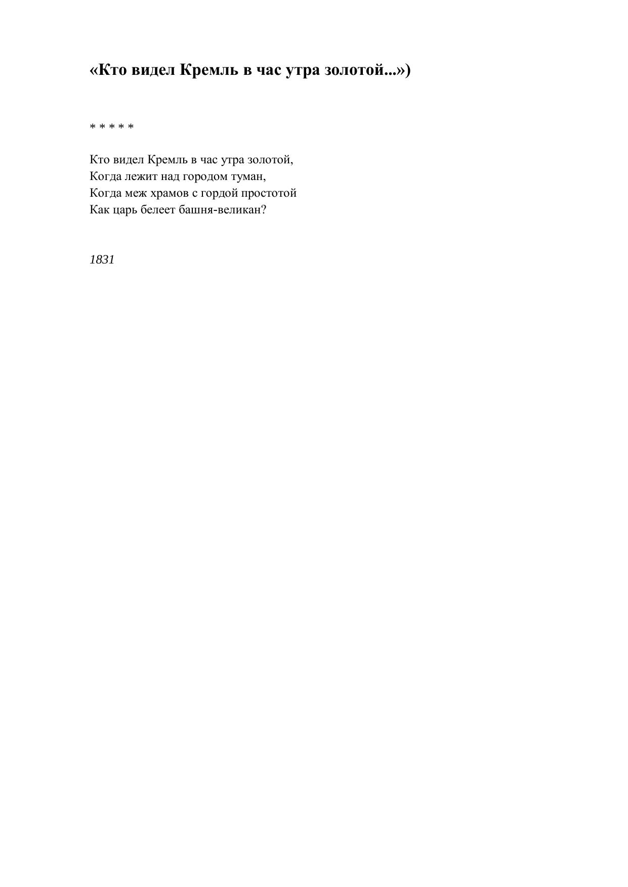 Кто видел Кремль в час утра золотой...)