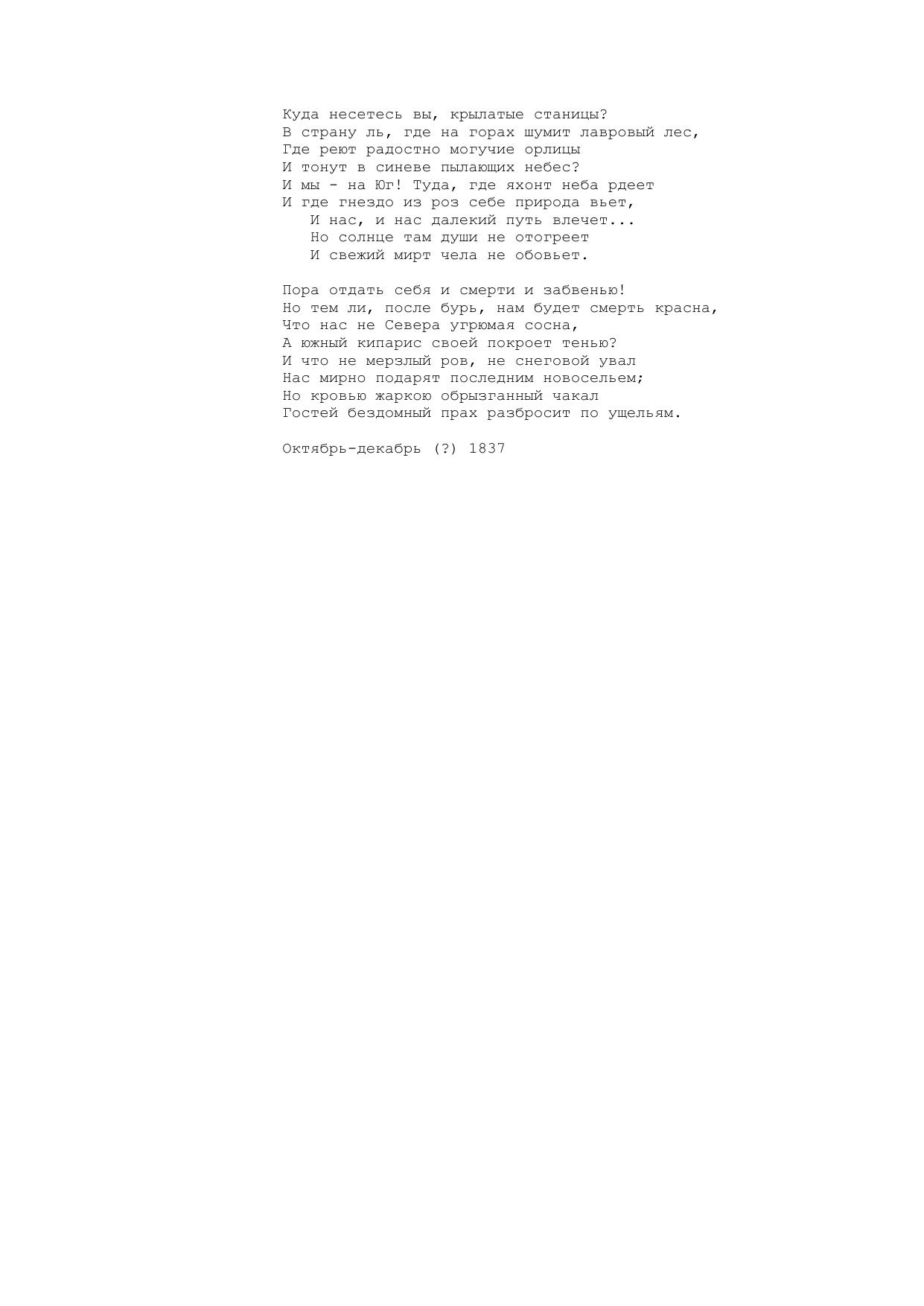 Куда несетесь вы, крылатые станицы?..