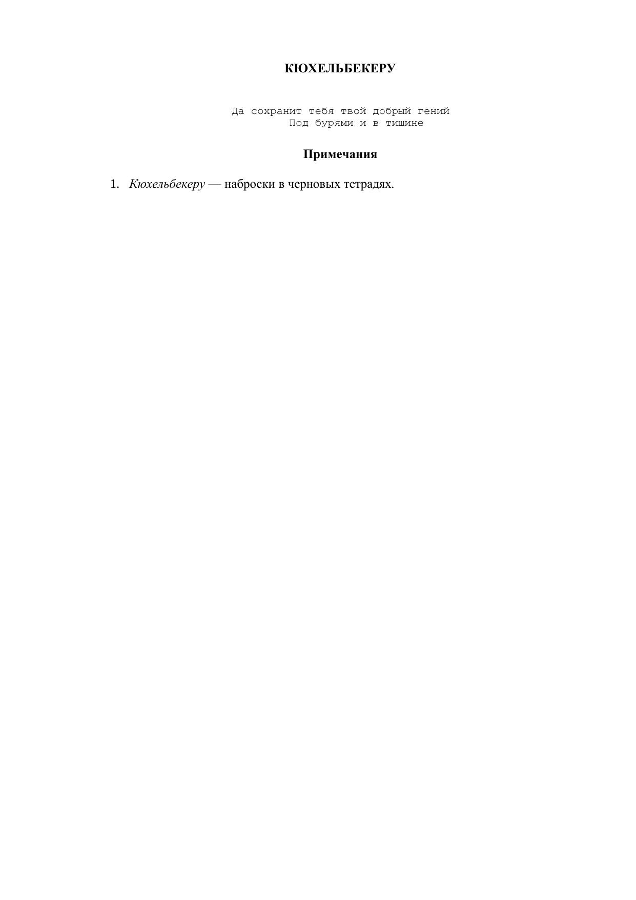 Кюхельбекеру ("Да сохранит тебя твой добрый гений...")