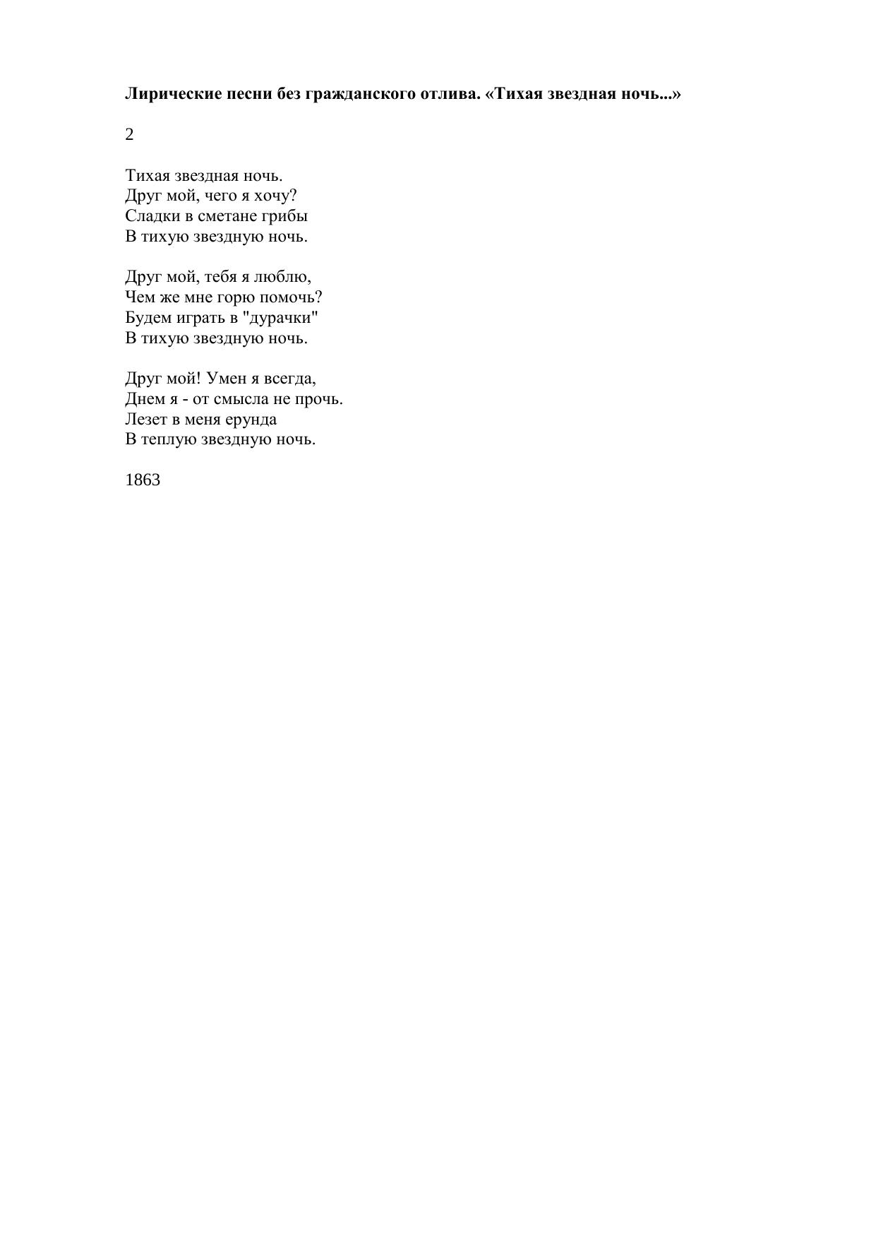 Лирические песни без гражданского отлива. Тихая звездная ночь...