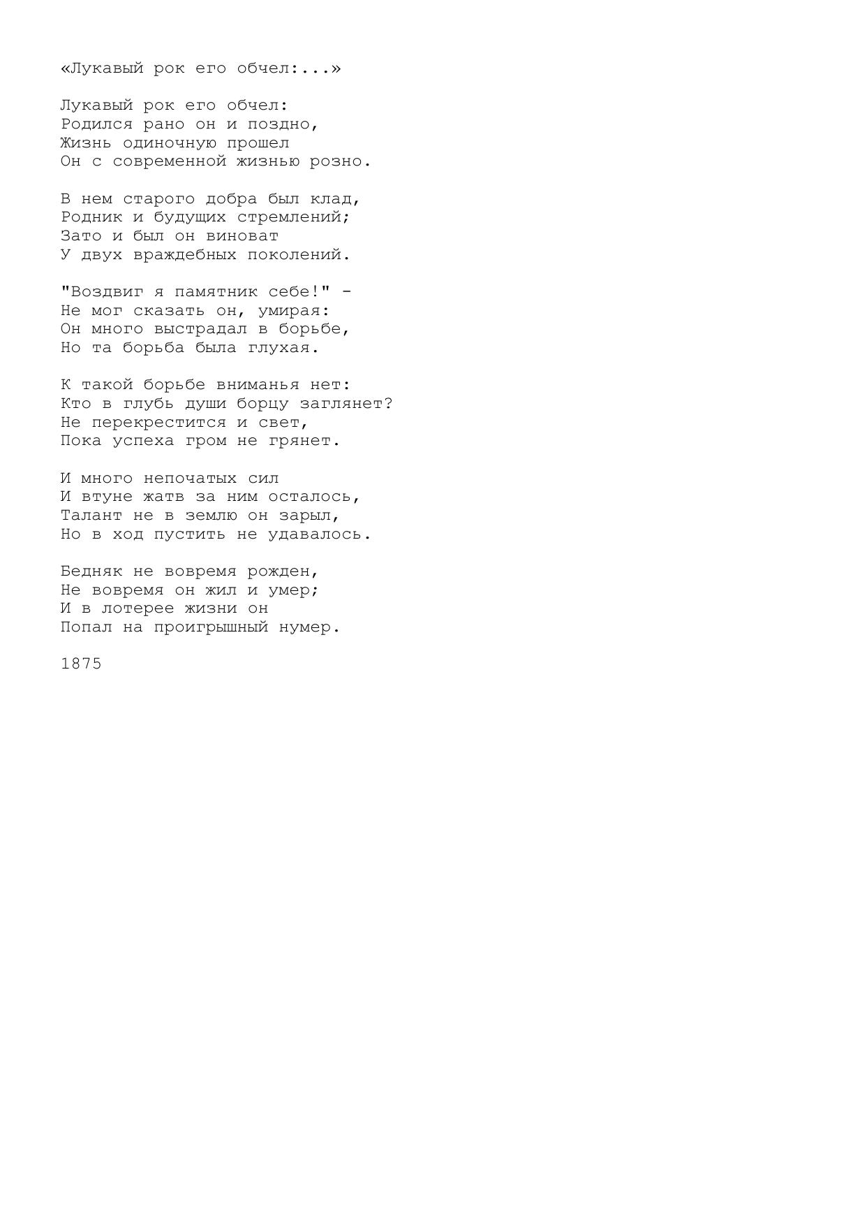 Лукавый рок его обчел:...