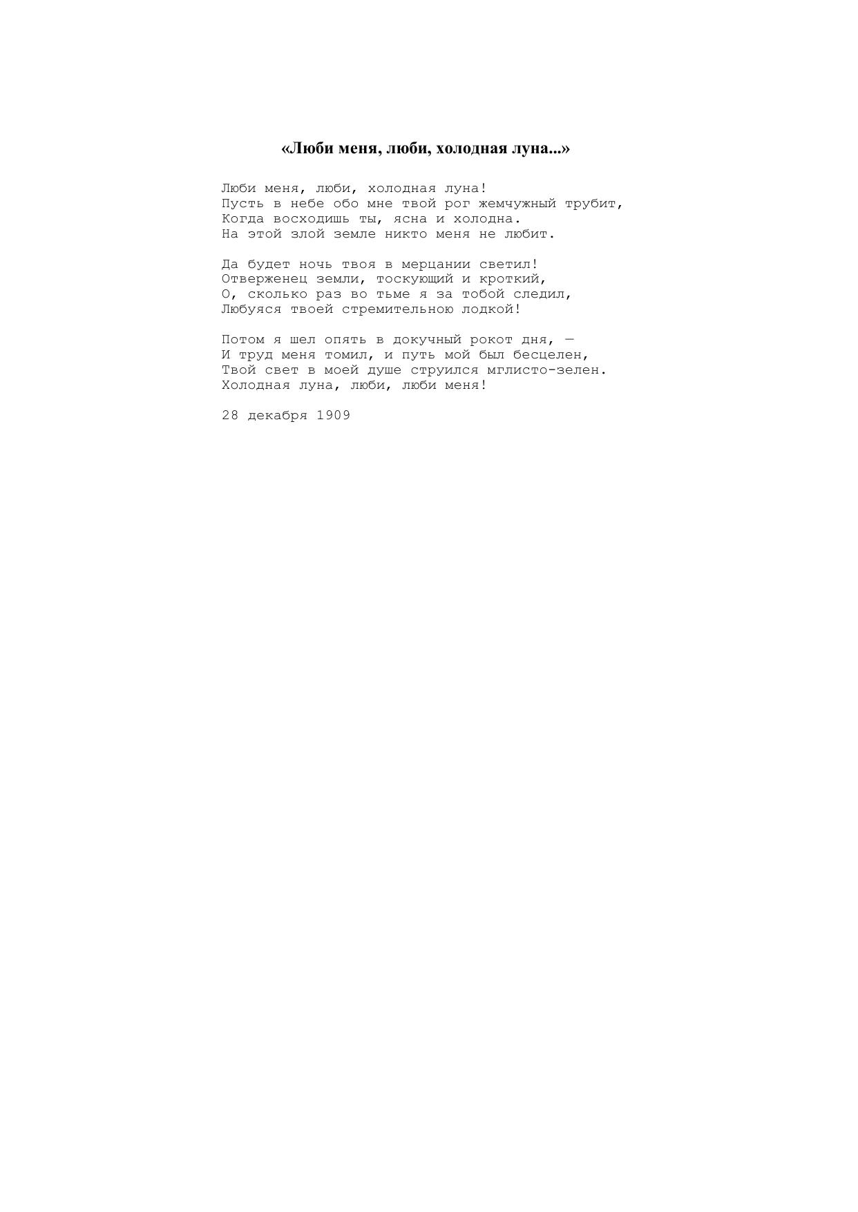 Люби меня, люби, холодная луна...