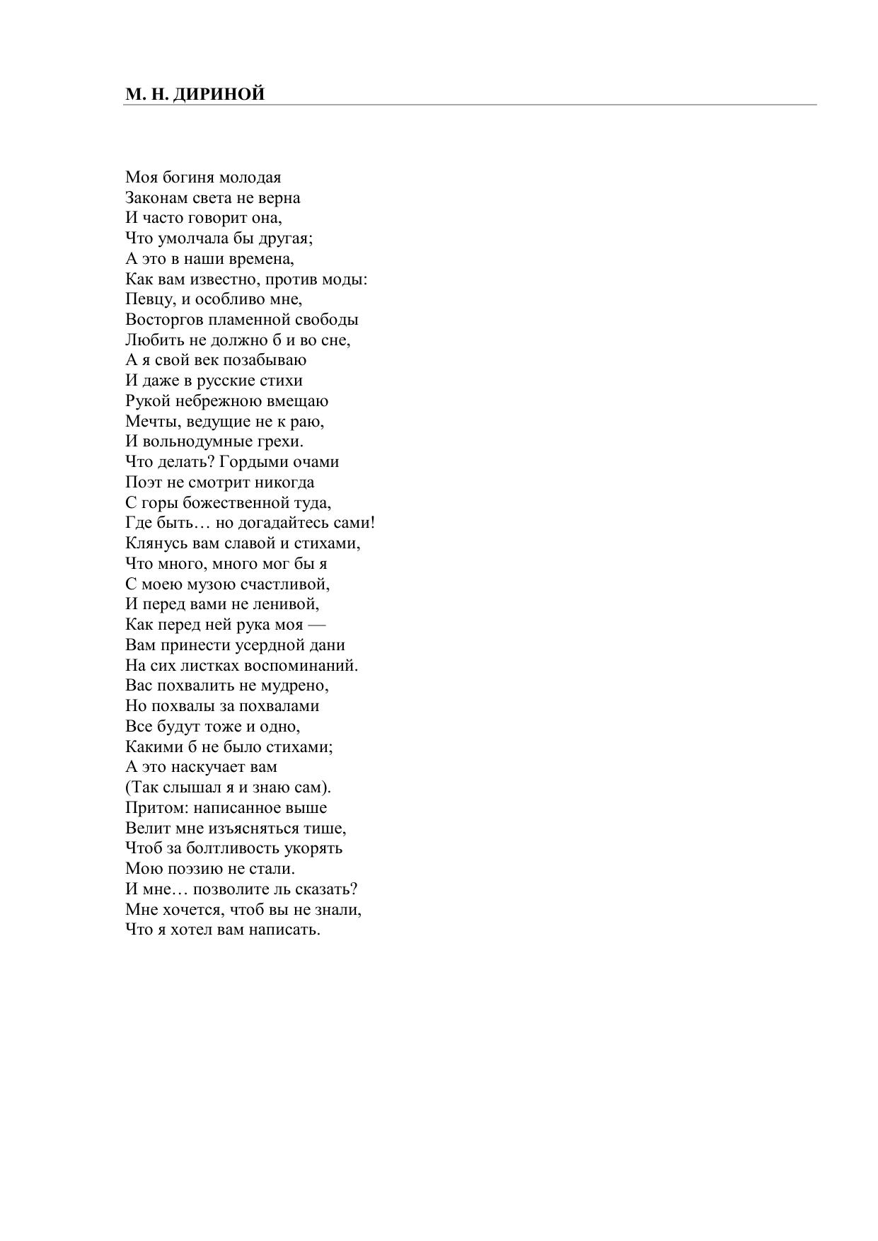 М. Н. Дириной (Моя богиня молодая…)