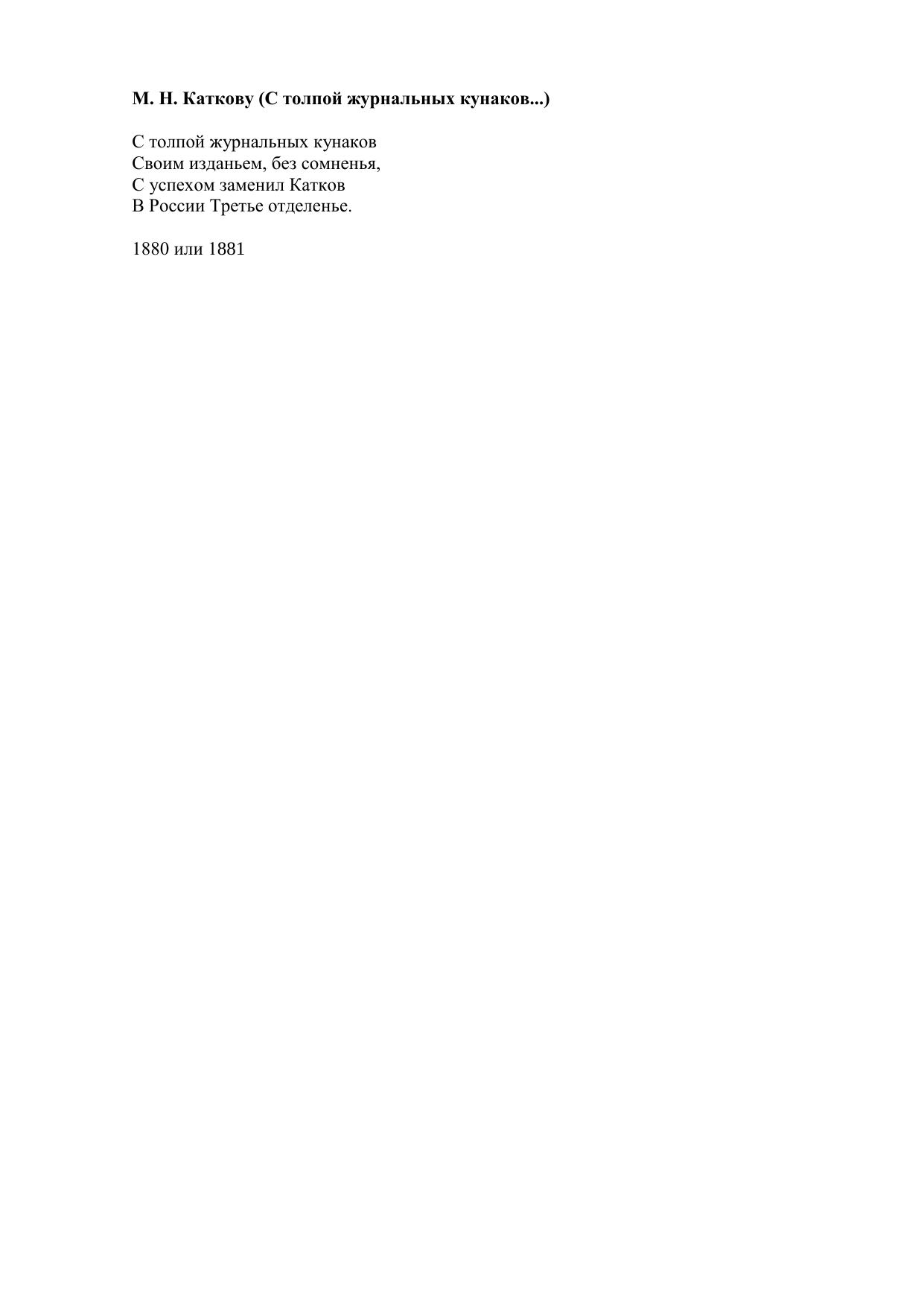 М. Н. Каткову С толпой журнальных кунаков...
