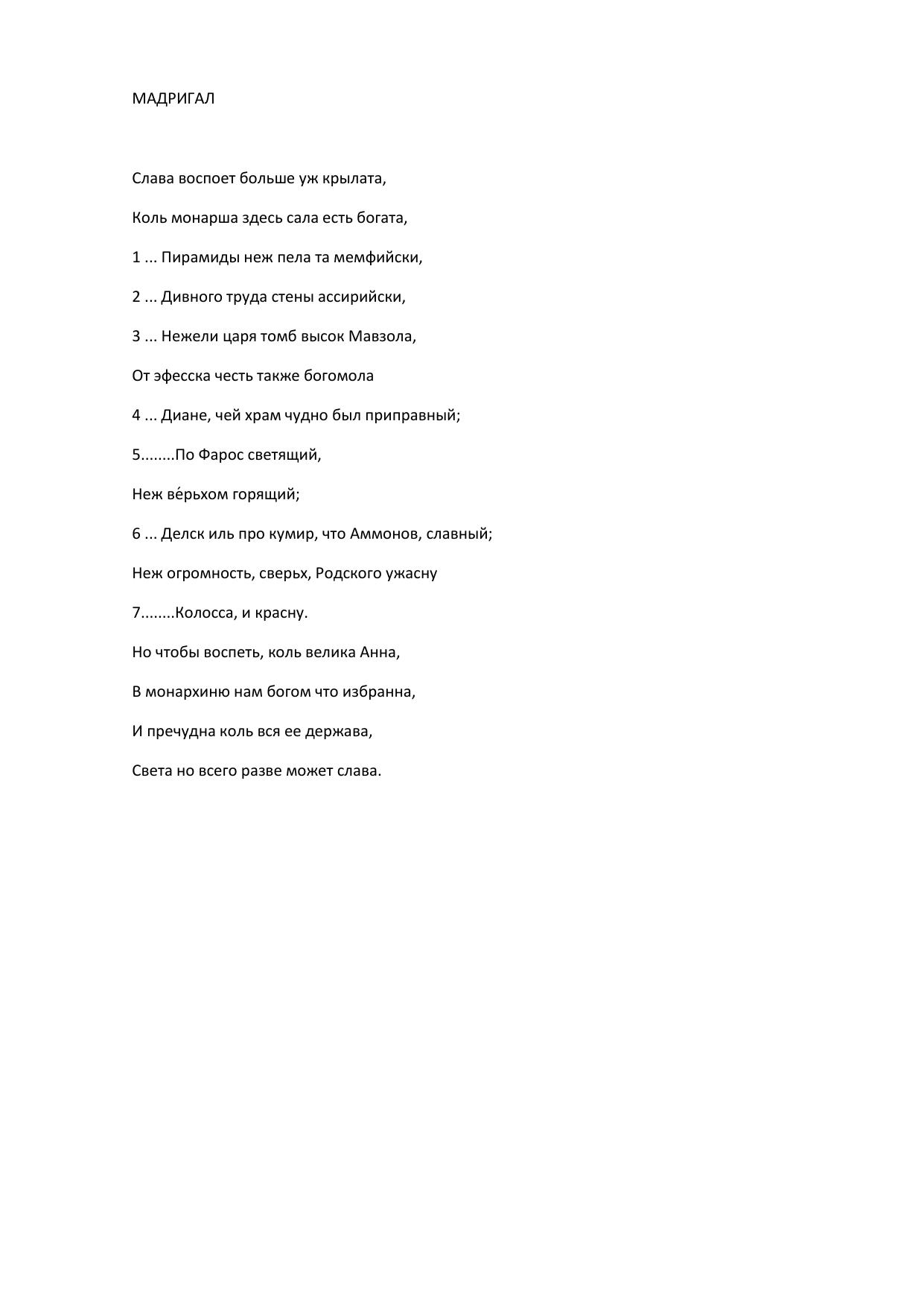 Мадригал (Слава воспоет больше уж крылата...)