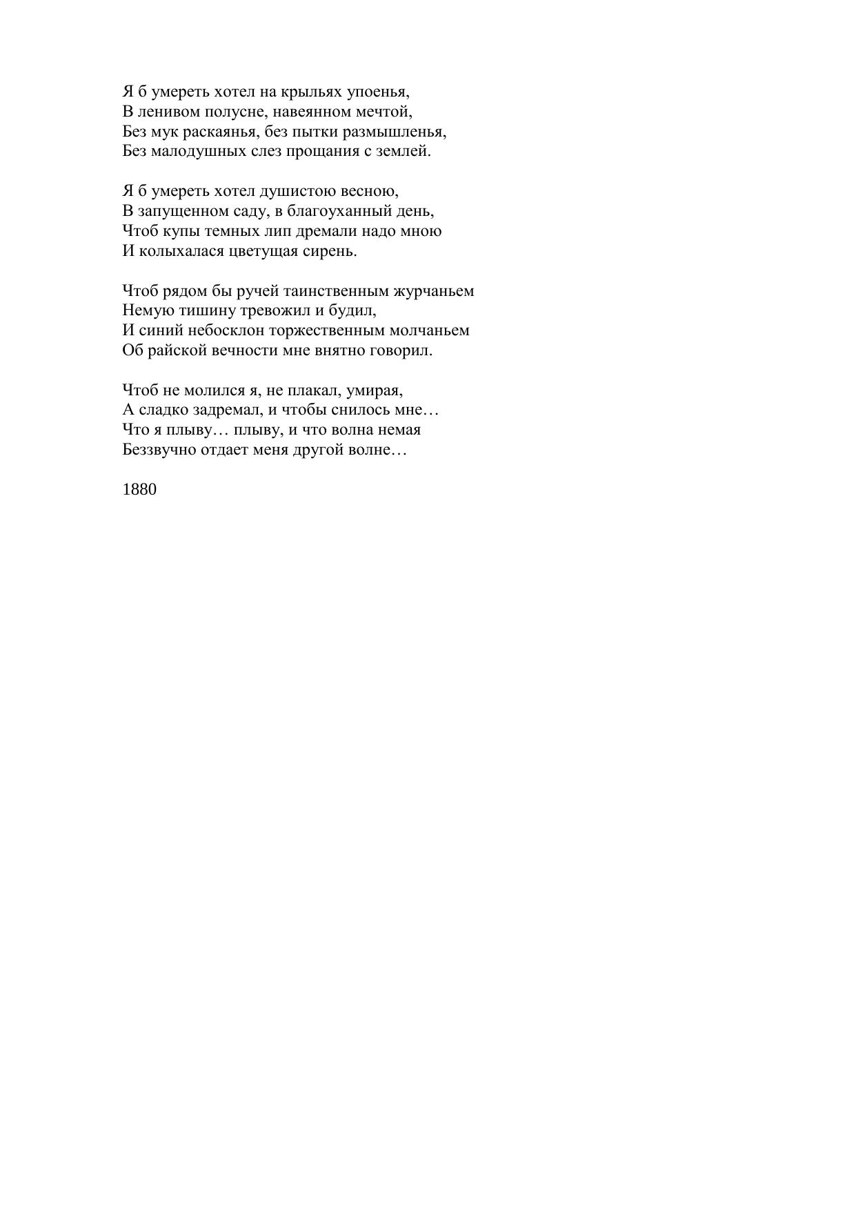 Мелодия Я б умереть хотел на крыльях упоенья...