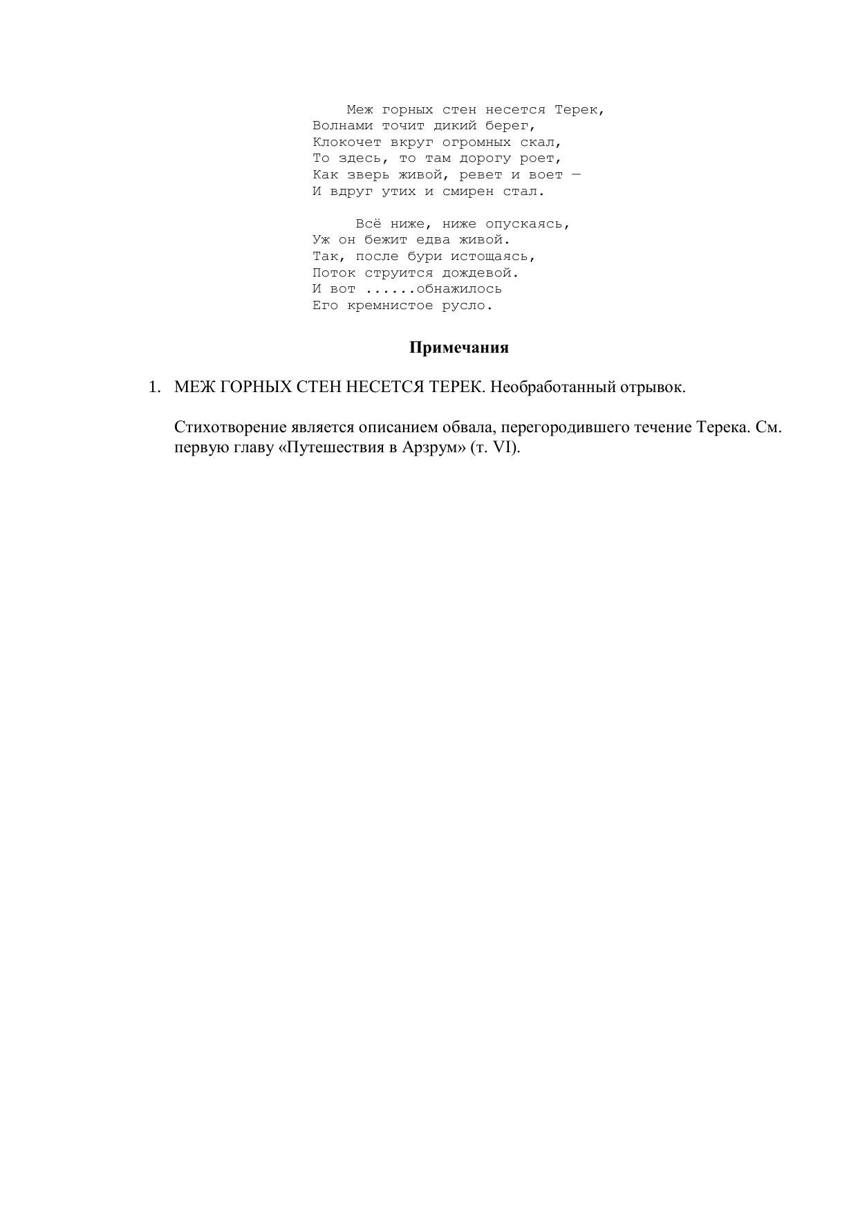 Меж горных стен несется Терек...